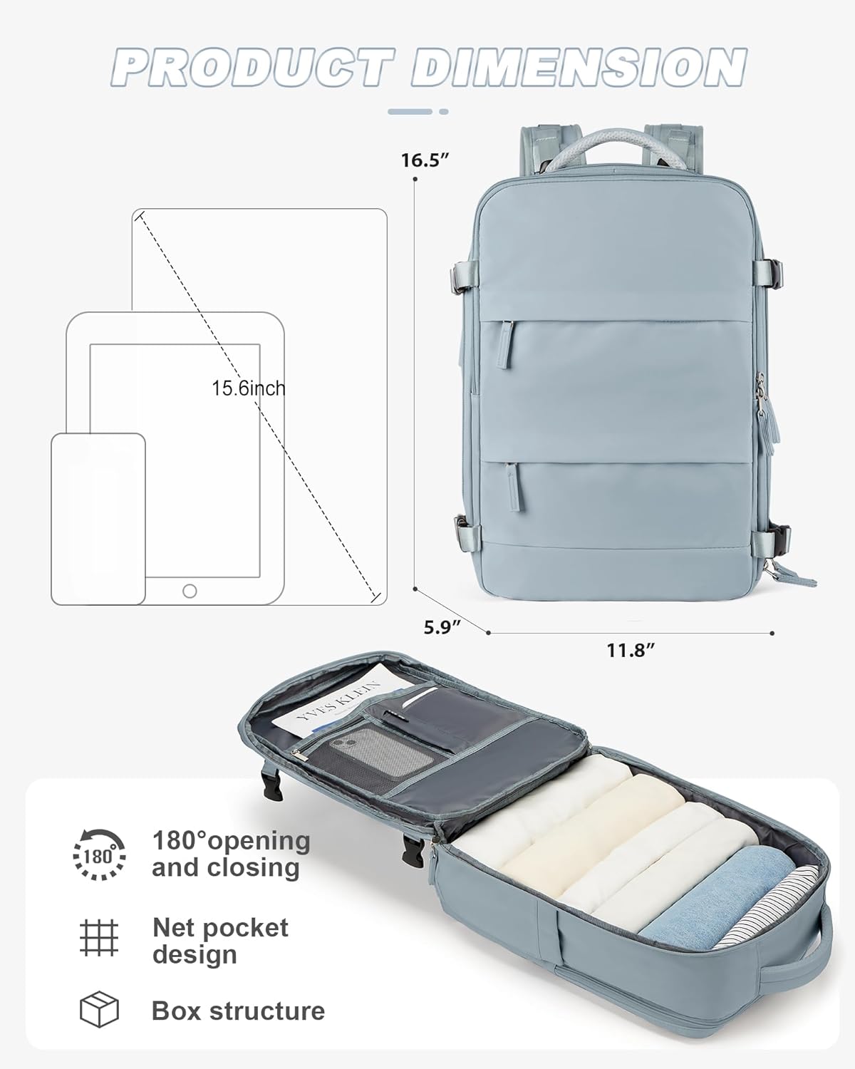 【Carry-on Bags for Airplanes】The external dimensions of this travel bag are 16.5″ x 11.8″ x 5.9″ (42 cm x 30 cm x 15 cm), with an approximate weight of 2 pounds/0.9 kilograms (data for reference only, actual dimensions may vary). This luggage backpack can be used as a personal items backpack for airlines without incurring additional charges. In addition, this camping backpack can be placed under the airplane seat as an underseat carry-on bag.