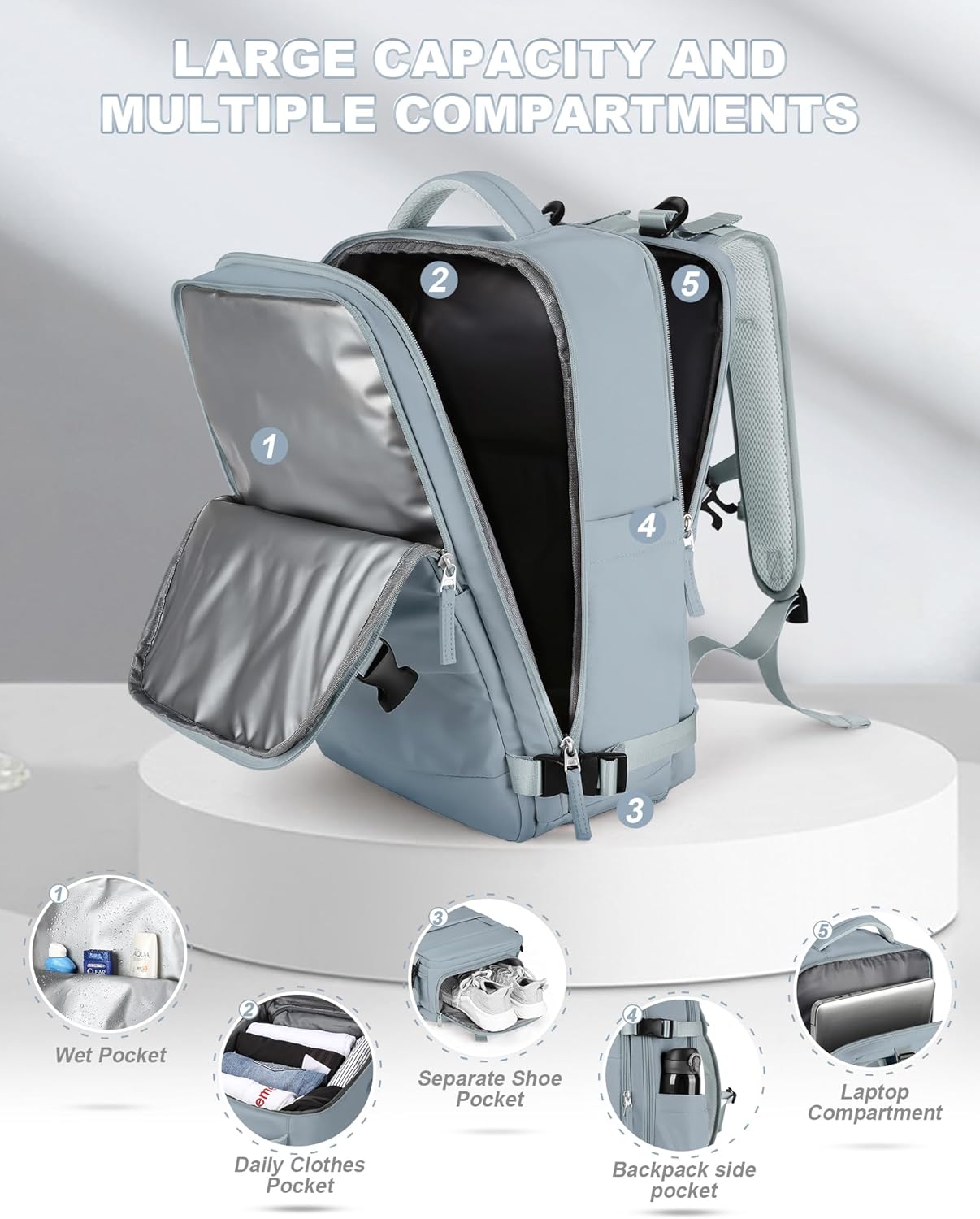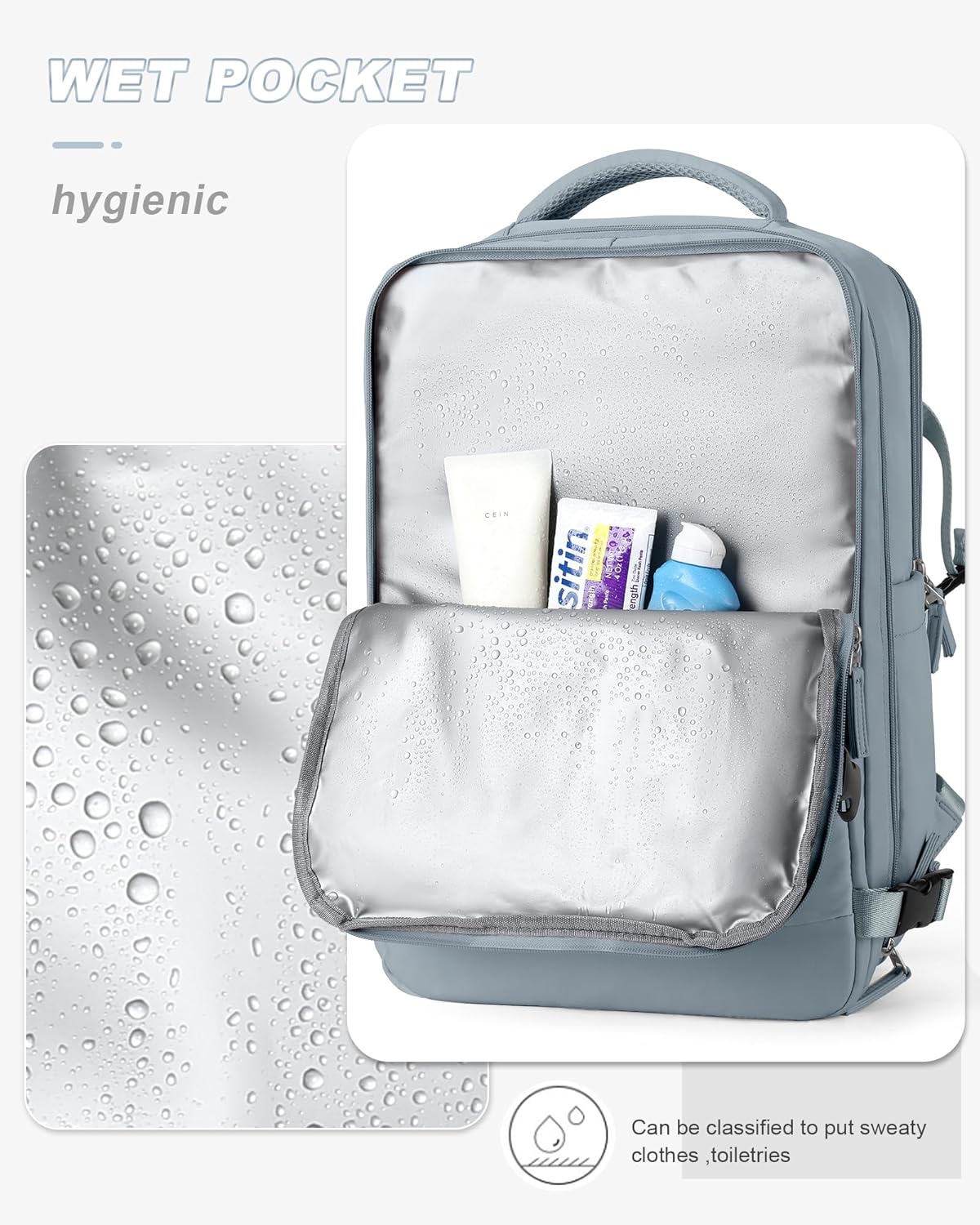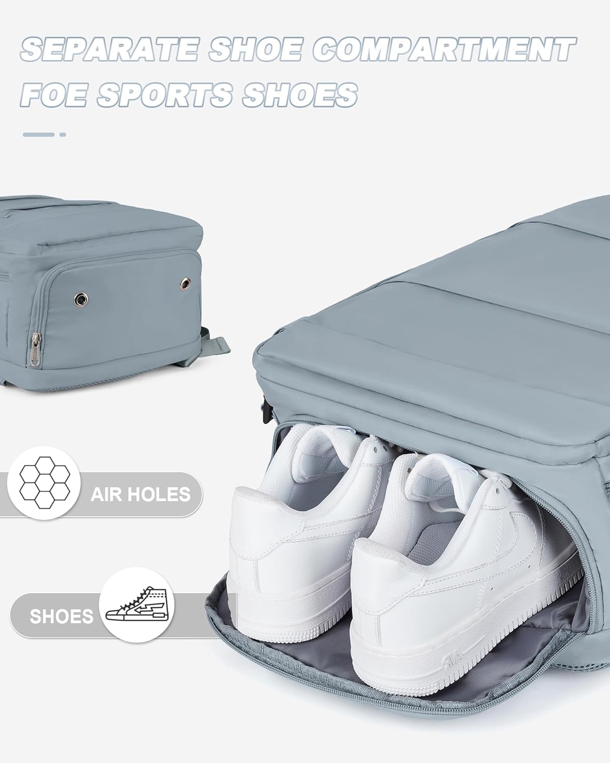 【Shoes Compartment & Wet Clothes Compartment】This weekend bag with shoes compartment can be used for sneakers, casual shoes and slippers. There is also a wet/dry clothes separator bag which is waterproof and can hold travel essentials, towels, wet and dirty clothes, etc. So this backpack can be used as a sports backpack, gym bag, beach bag, swimming bag, dance bag.