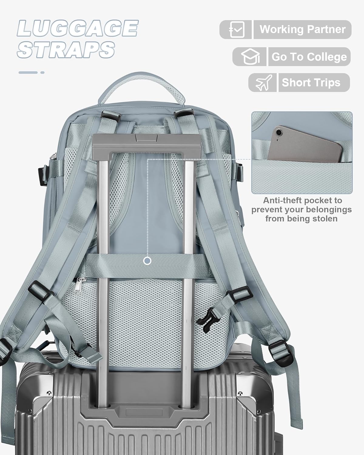 【Travel Essentials】This travel bag has a clothing compartment that can hold the clothes you need for a weekend trip. It can also be used as a work backpack to hold items needed for office work. As a travel essential, this backpack has luggage trolley straps on the back so you can attach the backpack to your luggage trolley to make your travel easier. The back of the backpack has a chest buckle in addition to the foam padding that will reduce your stress while traveling.