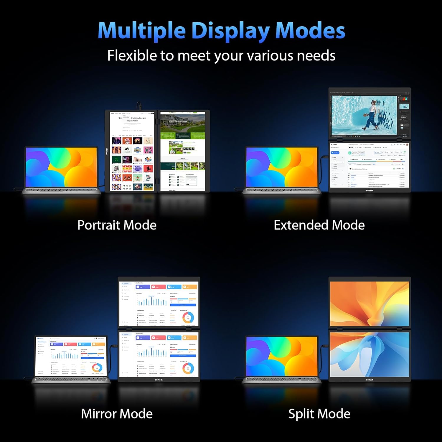 ⚡Versatile Foldable Monitor- The 360°rotatable upper screen allows you to share the screen with your friends or colleagues in all directions. With a screen rotation button, simply press and flip your laptop screen 180° in face-to-face discussions. With a 3.5 lbs weight and 3.1’’ slim metal frame, though this monitor has 2 screens, it can be folded up and carried like a laptop, portable for trips. Support extend/mirror/split/portrait modes and bring your perfect multi-screen display experience.