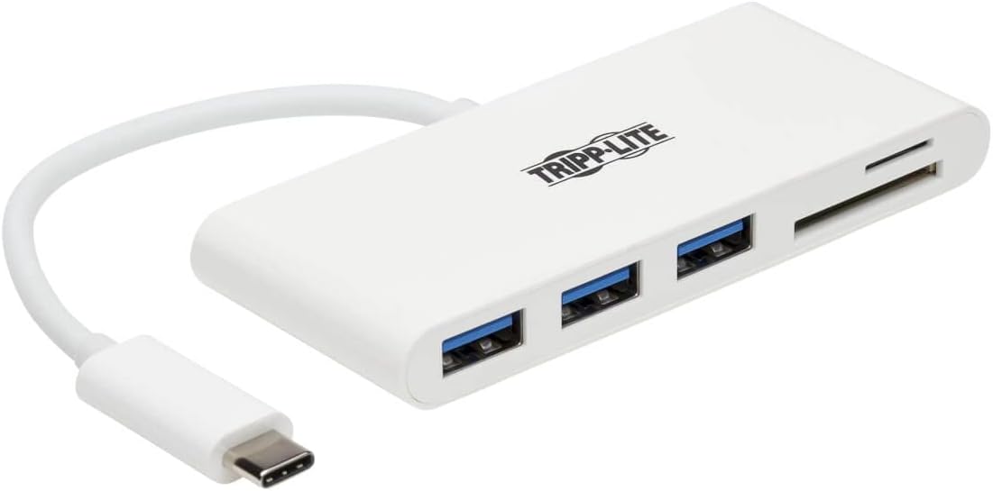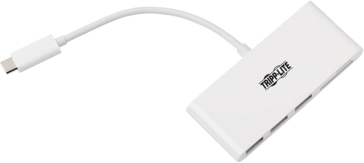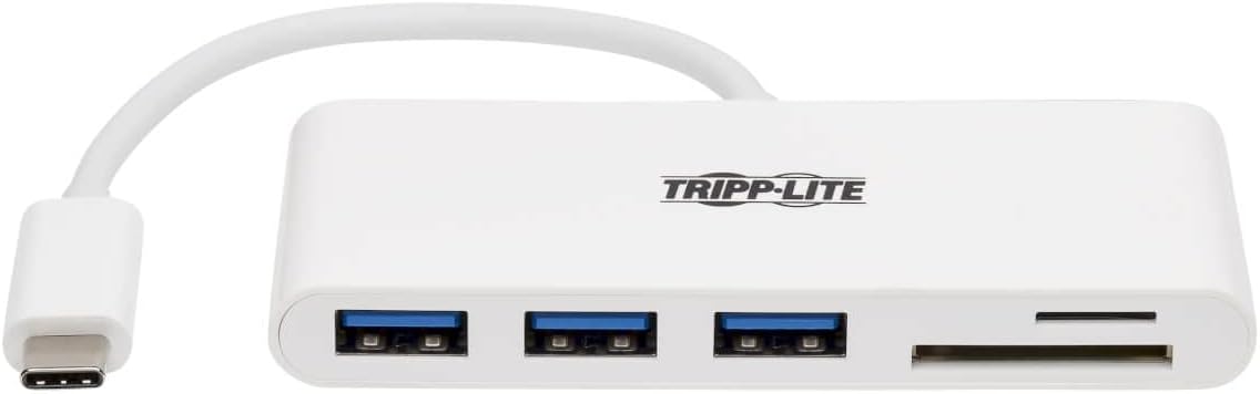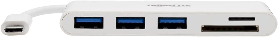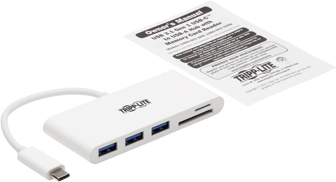 The U460-003-3AM 3-Port USB 3.1 Gen 1 Portable Hub’s built-in USB-C cable plugs into the USB-C port on your computer, laptop, or tablet to give you three external USB-A ports and two memory card slots. Not only does this hub let you use Micro SD and SD/MMC cards for external storage with your device, it also lets you connect a wide range of USB devices, such as flash drives, external hard drives, DVD drives, MP3 players, and digital cameras.
