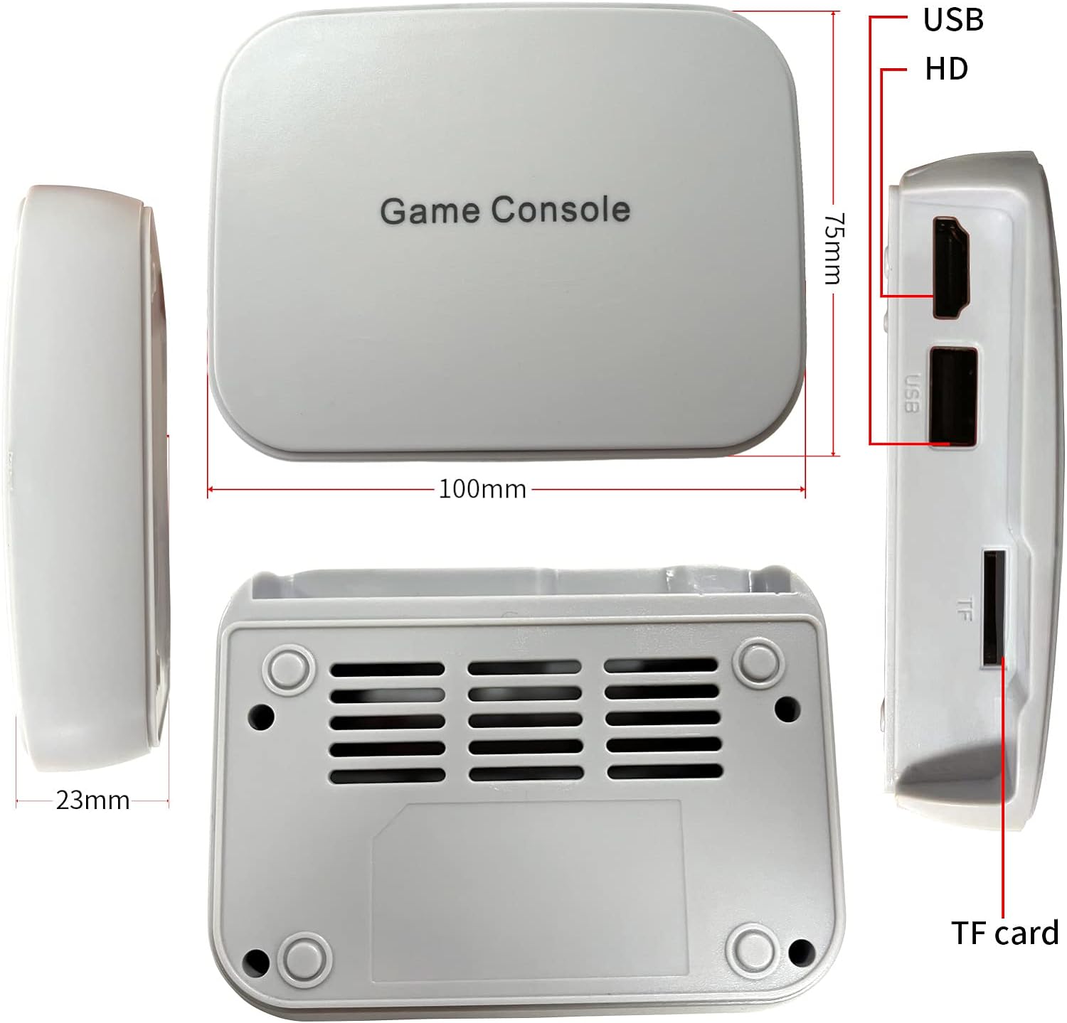 2. Game console output ports: USB, HD, TF card slot (built-in 2G TF card)