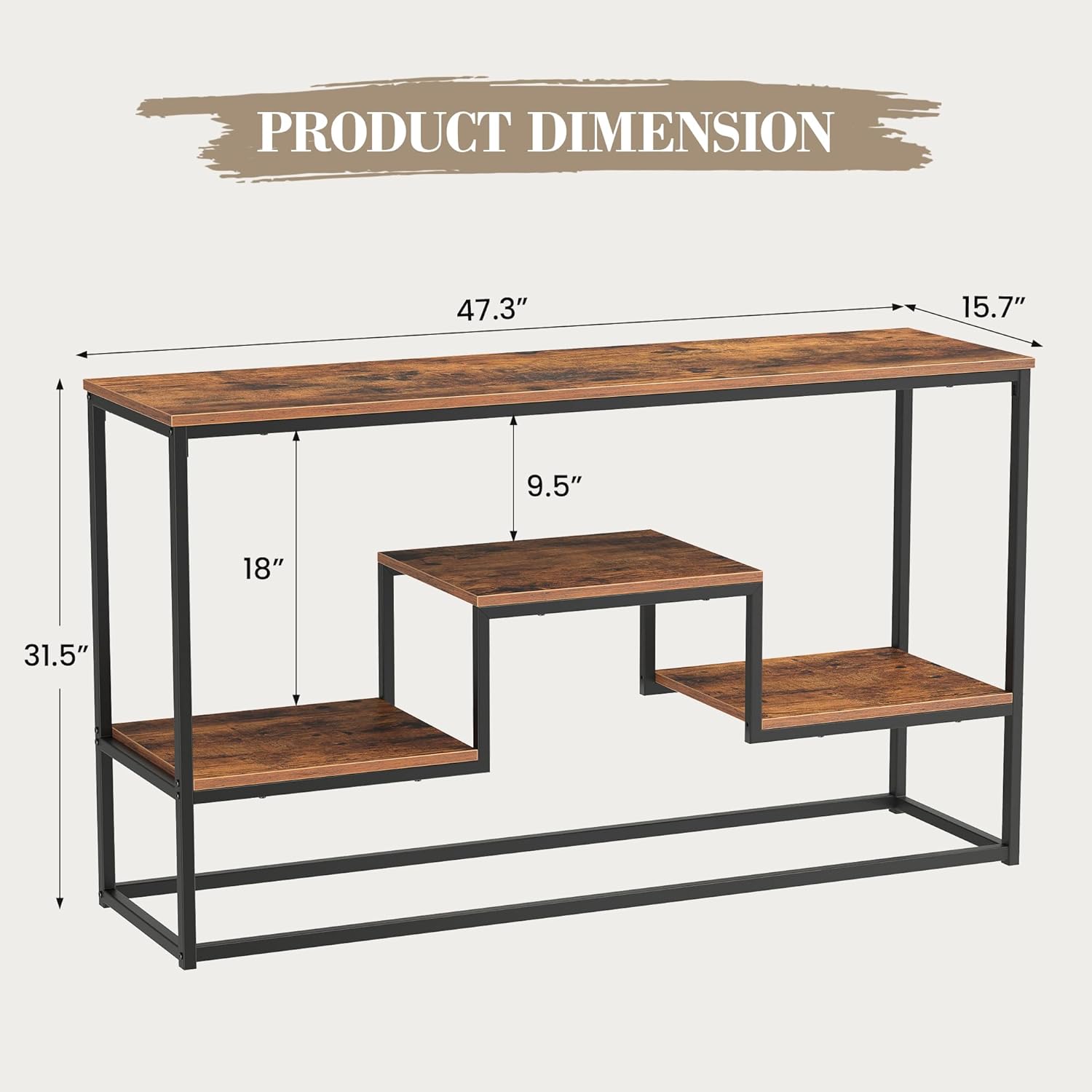 【Two Size Options】Choose from two size options: 47.3″ x 15.7″ x 31.5″ or 55.1″ x 15.7″ x 31.8″, suitable for TVs up to 65″ and features three shelves for plenty of extra storage.