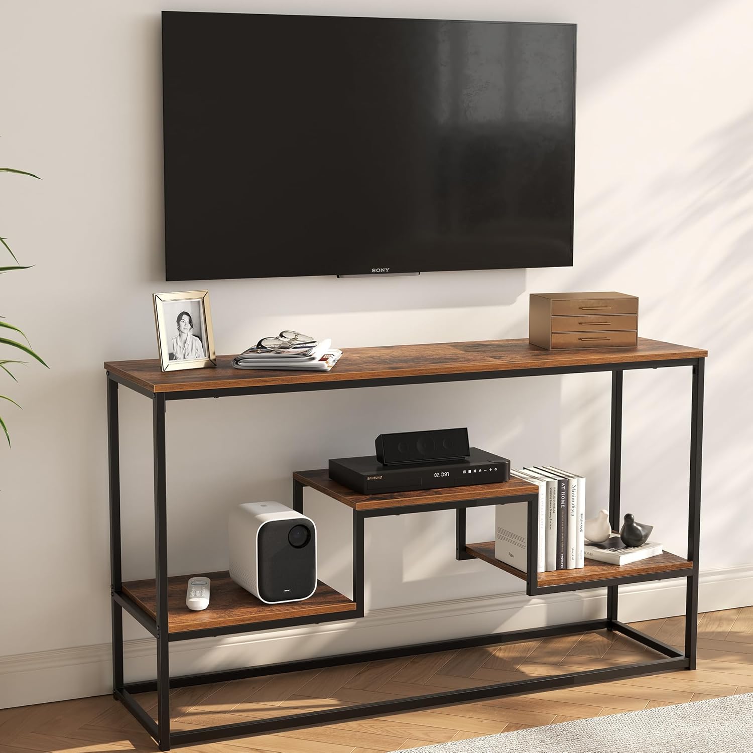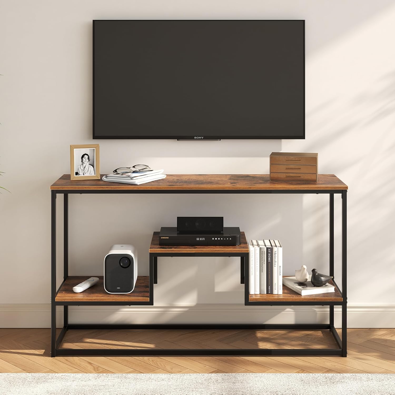 【Modern Industrial Design】Our entertainment center features a sleek combination of wood and metal, offering a modern and practical complement to any home decor. Its simple silhouette blends seamlessly with any style.