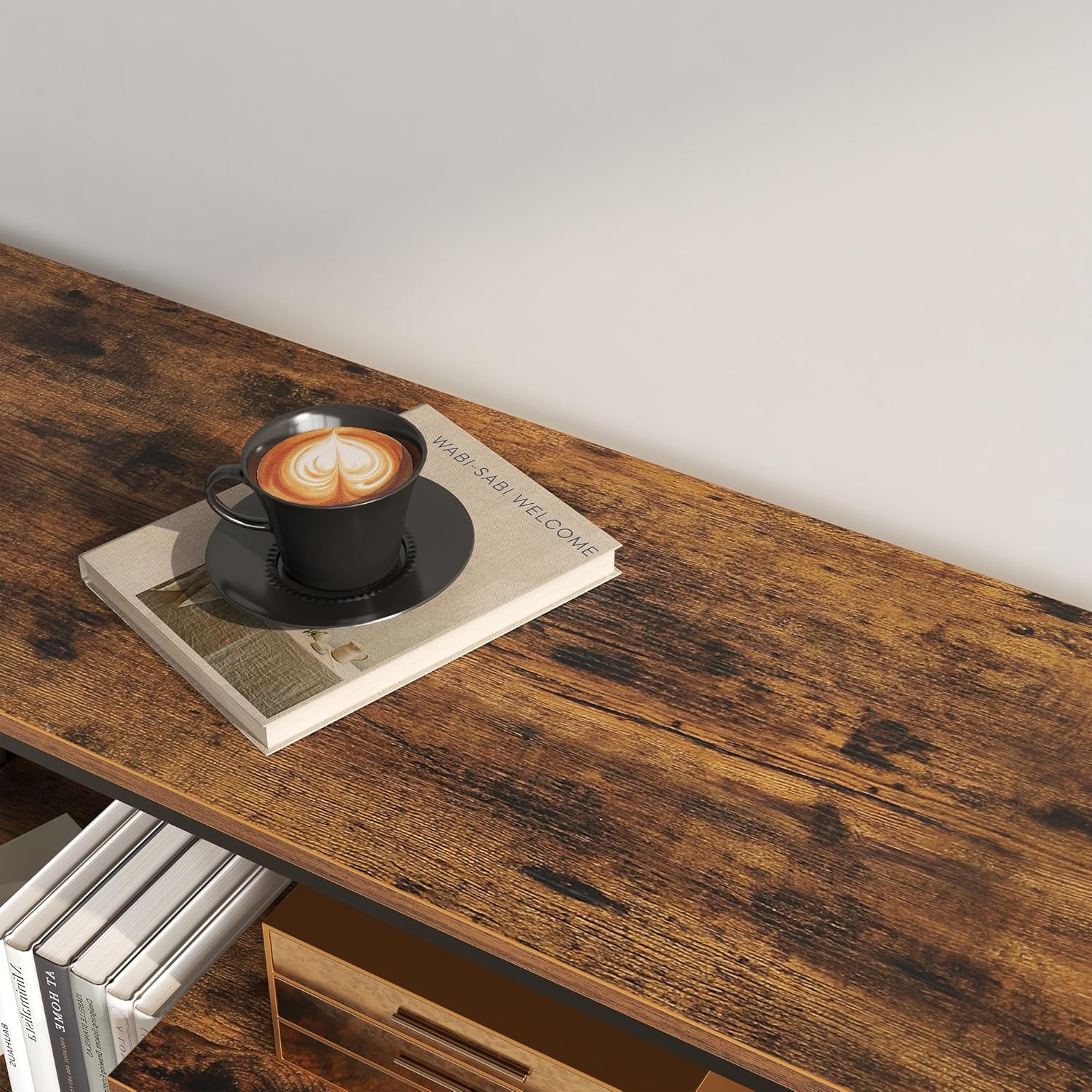 【Sturdy and Stable】This TV console table is made of high-quality wood and reinforced with a metal steel frame. It has a solid structure that offers unparalleled stability. In addition, this water-resistant wood is easy to maintain on a daily basis.
