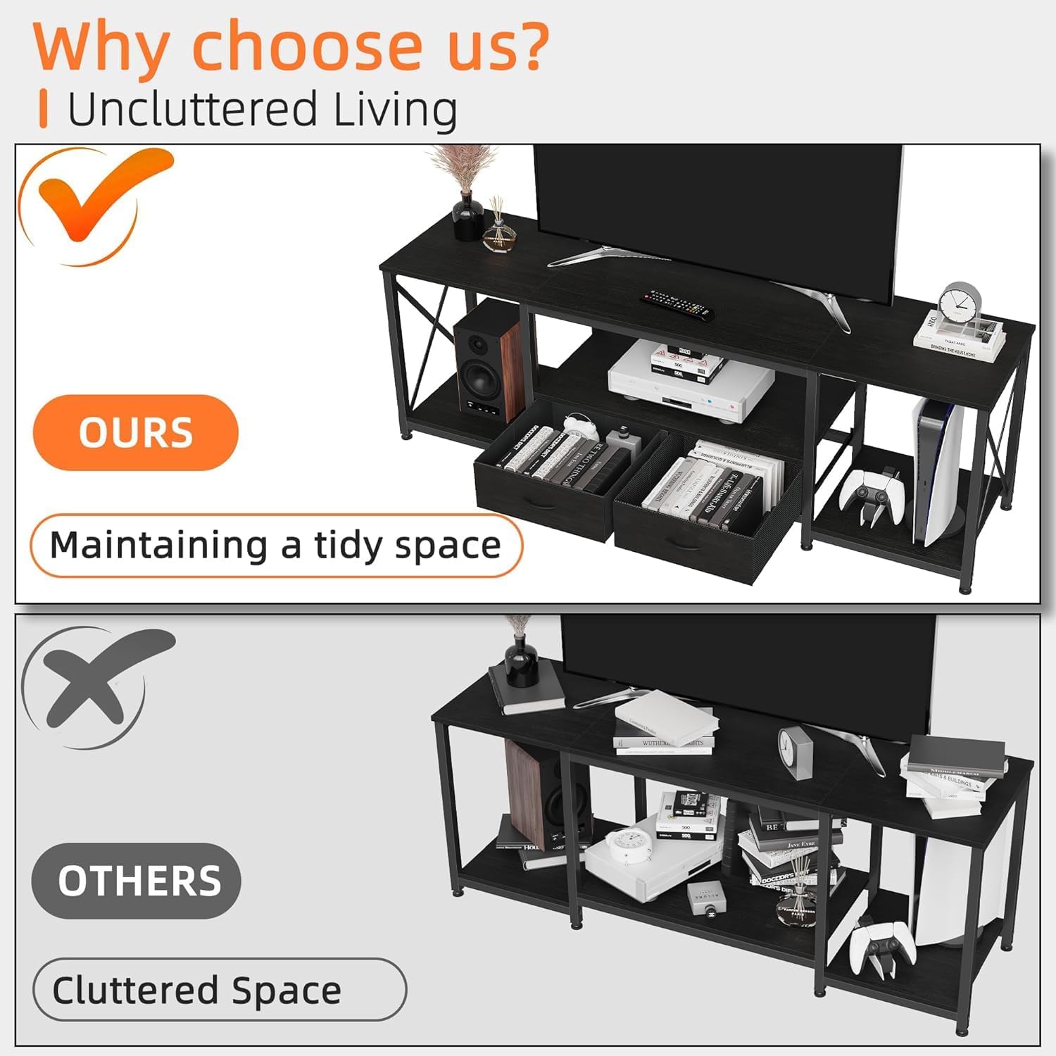 【Ample storage space for all your needs】 This TV support provides a generous storage capacity, which allows you to carefully organize and store your media devices, DVD, game consoles and other accessories. Enjoy an entertainment zone without disorder where everything is within reach and is well organized.