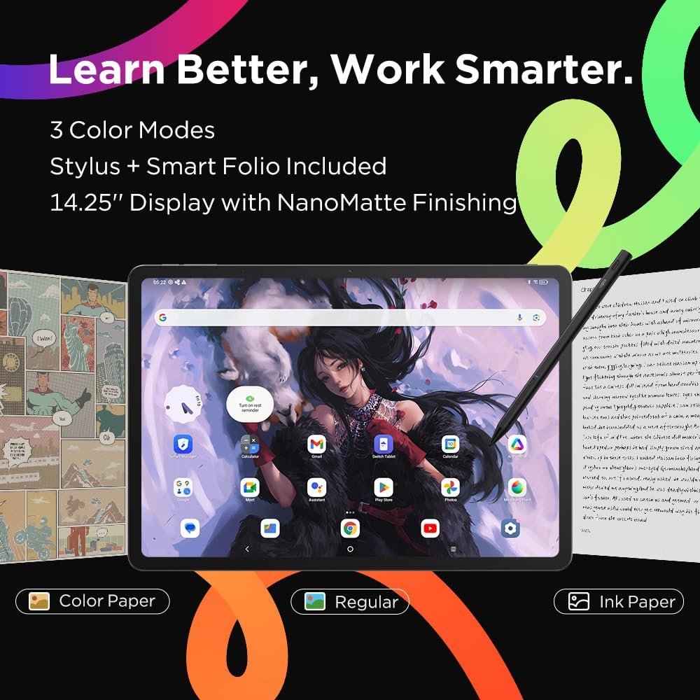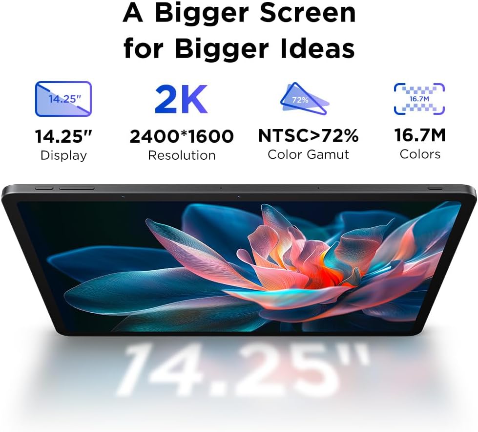 Powerful staff with extended use: Android tablet equipped with an octa-core processor of 6 Nm high performance and an Android 14 operating system for an operation and compatibility without problems. A 10000 mAh battery with a 27W DC fast charge ensures that its creative flow never stops