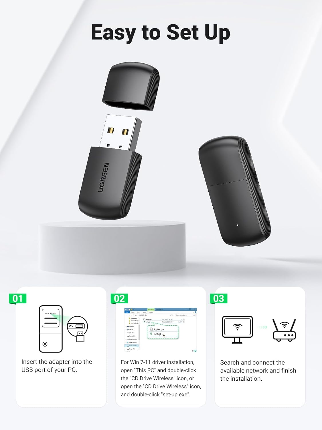 Widely Compatible: UGREEN USB wifi adapter is compatible with Windows 11/10/8.1/8/7. You can easily install the driver through our instructions.