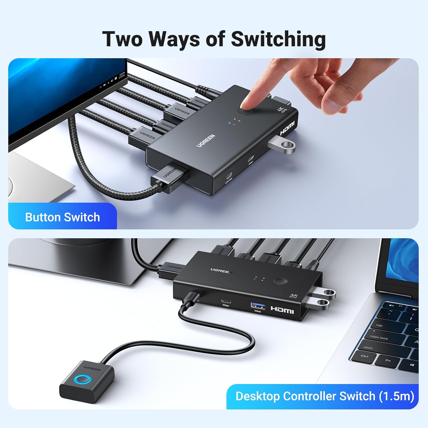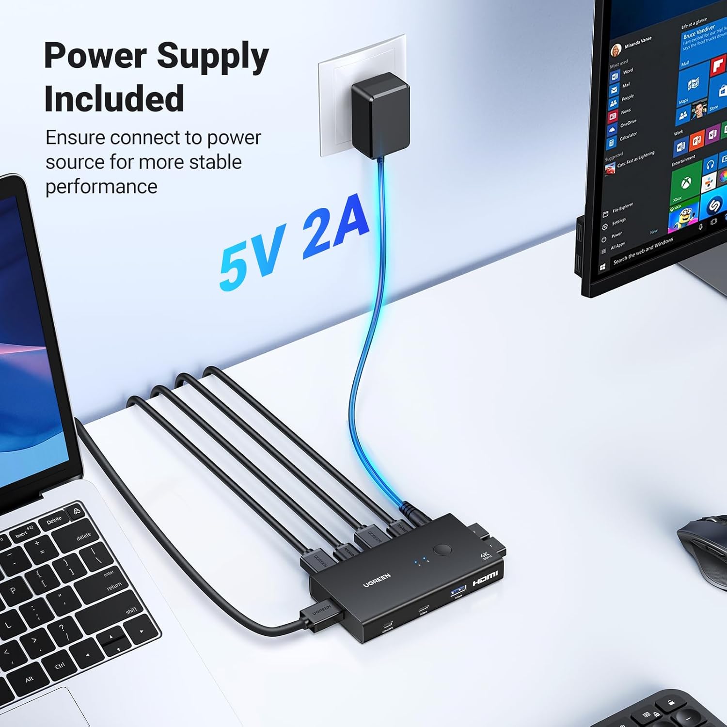 UGREEN HDMI KVM SWITCH 1 MONITOR 2 COMPUTERS WITH 4 USB 3.0 …