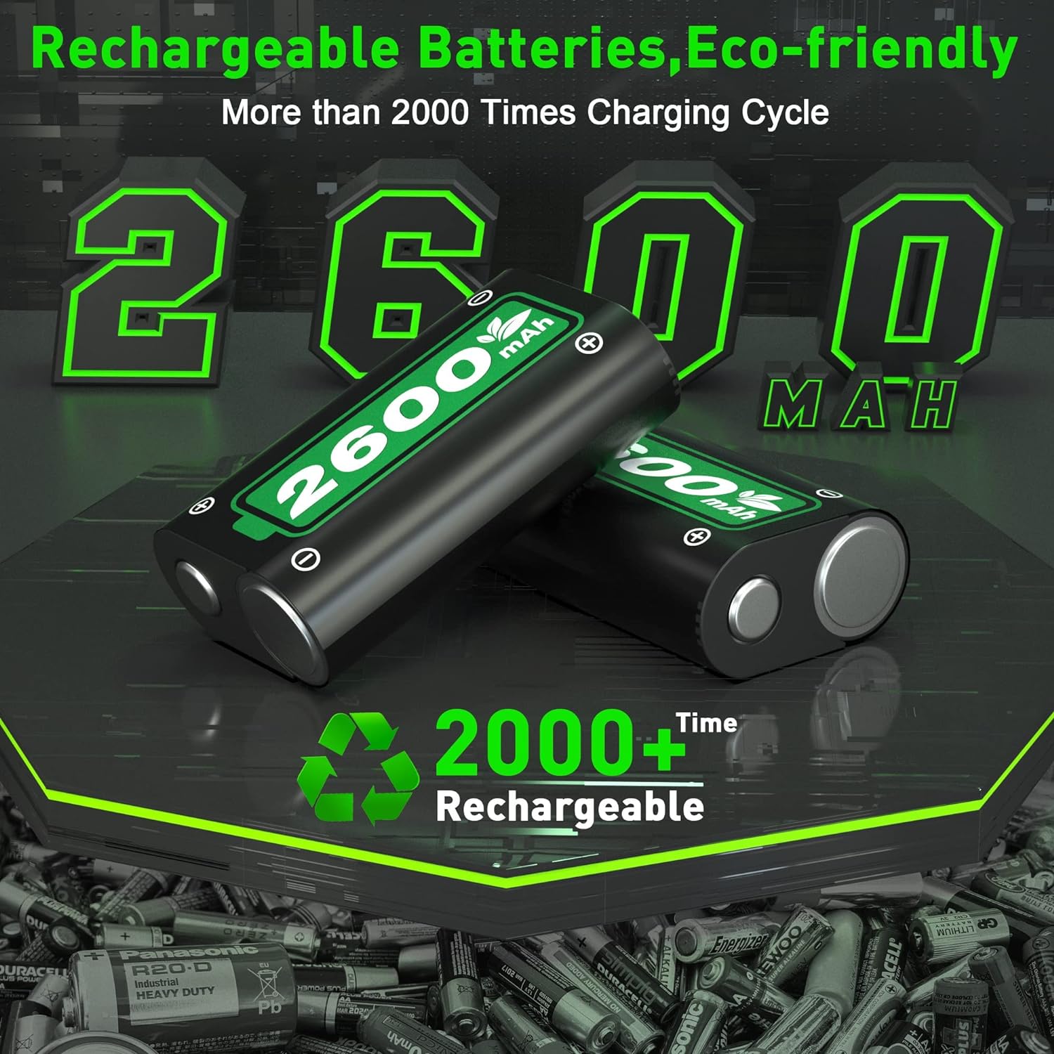 Ukor Fast Charging Rechargeable Battery 2x6200mWh (2x2600mAh)…
