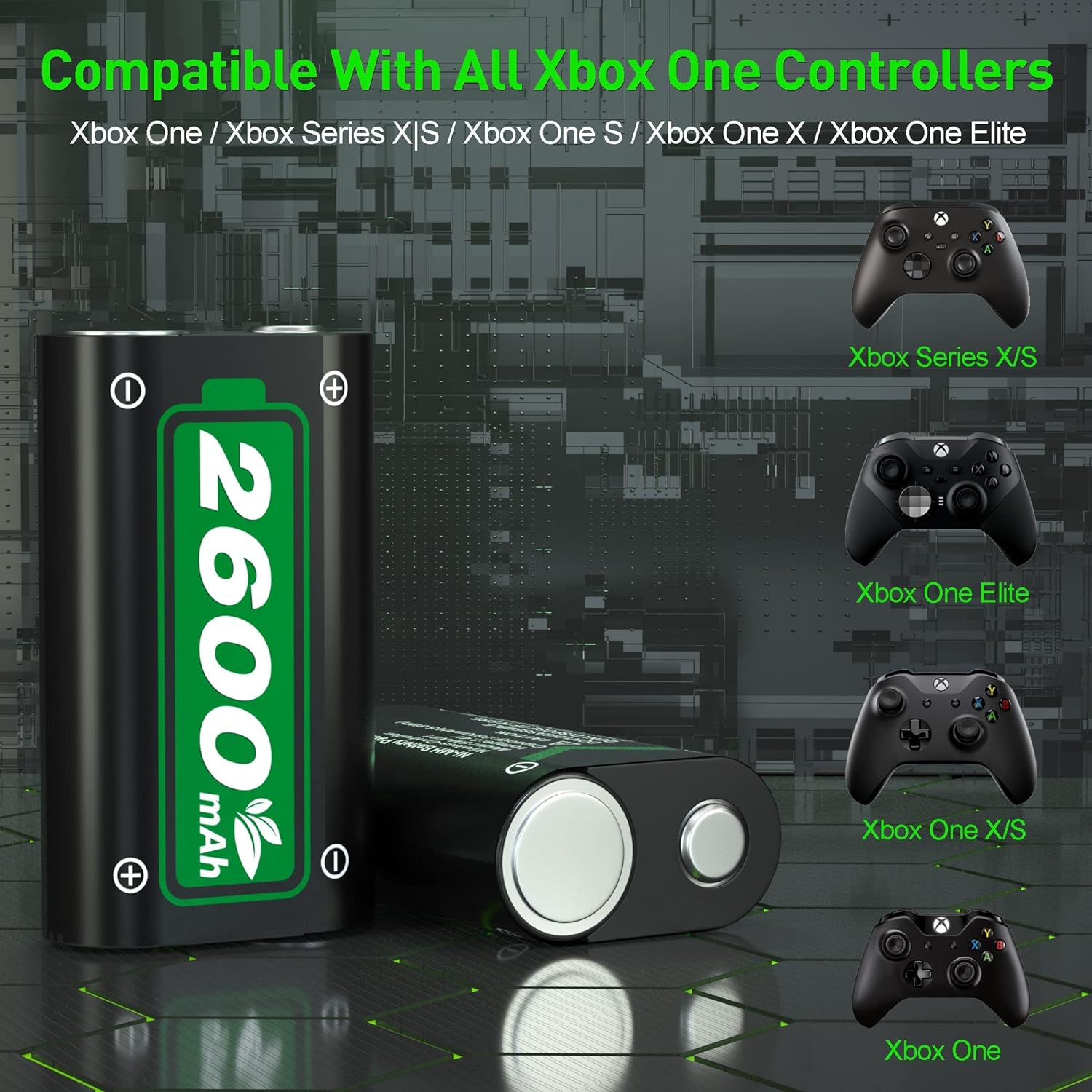 Large Capacity Xbox Controller Battery Pack: 2 2600mAh rechargeable batteries provide up to 28 hours of operation. Ukor Xbox rechargeable battery is compatible with Xbox One /Xbox One X / Xbox One S / Xbox Series X|S/Xbox One Elite wireless controller.