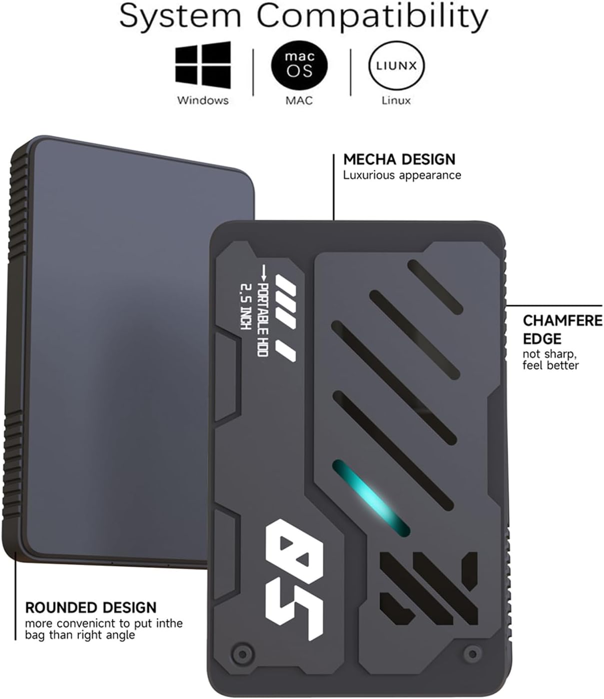 Ultra fast data transfers: it works with USB 3.0 technology, this USB hard drive is much faster than, but still compatible with the USB 2.0 backup unit, allowing a super fast transfer speed to up to 5 Gbps