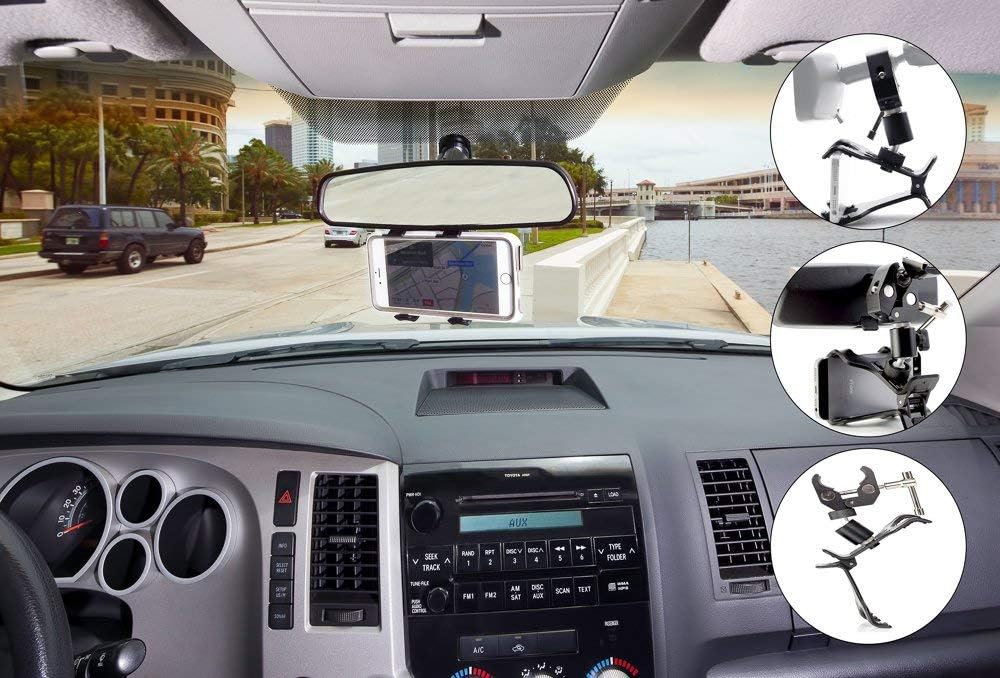 Made of high quality metal components including high quality 360 degree aluminum ball head, aluminum alloy rearview mirror clamp and sturdy plastic phone clamp. Note: These version 1 components can be used separately and independently of each other. .