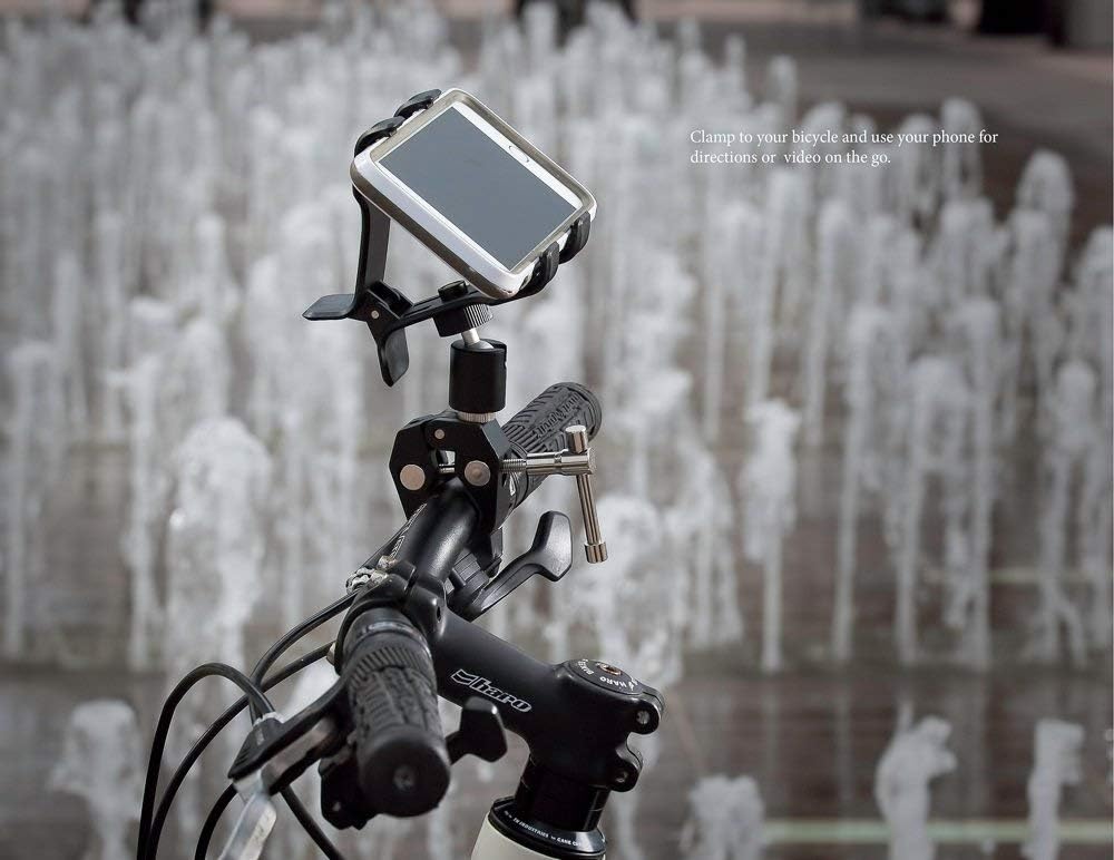This clamp can be easily removed from your car and mounted on a bicycle, selfie stick, tripod, office desk, tree branch, baby stroller, four-wheeler, golf cart and so on. any other place. You are only limited by your imagination.