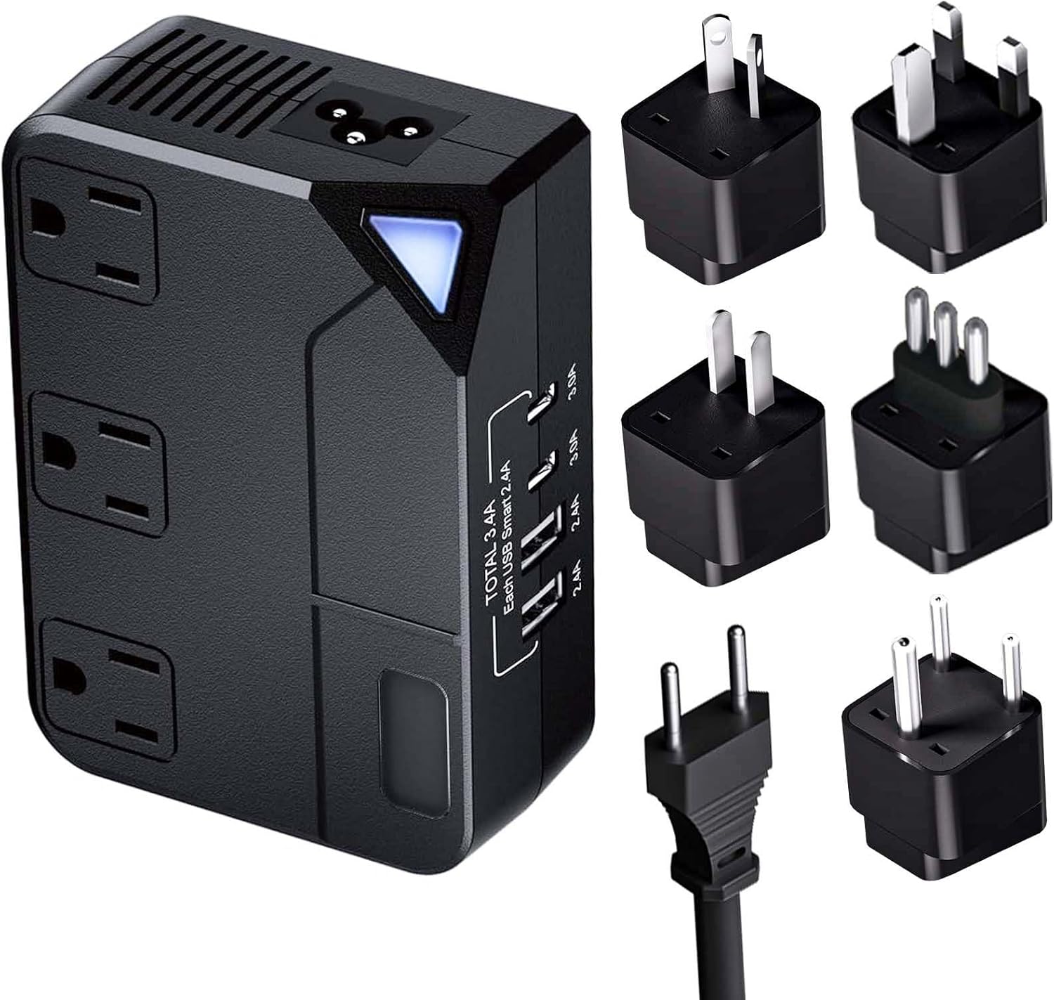 Designed to travel: 4 USB ports and 3 CA ports, they can load up to 7 devices at the same time, compact size (4.5 x 3.1 x 1.7 inches), it fits easily in their luggage.