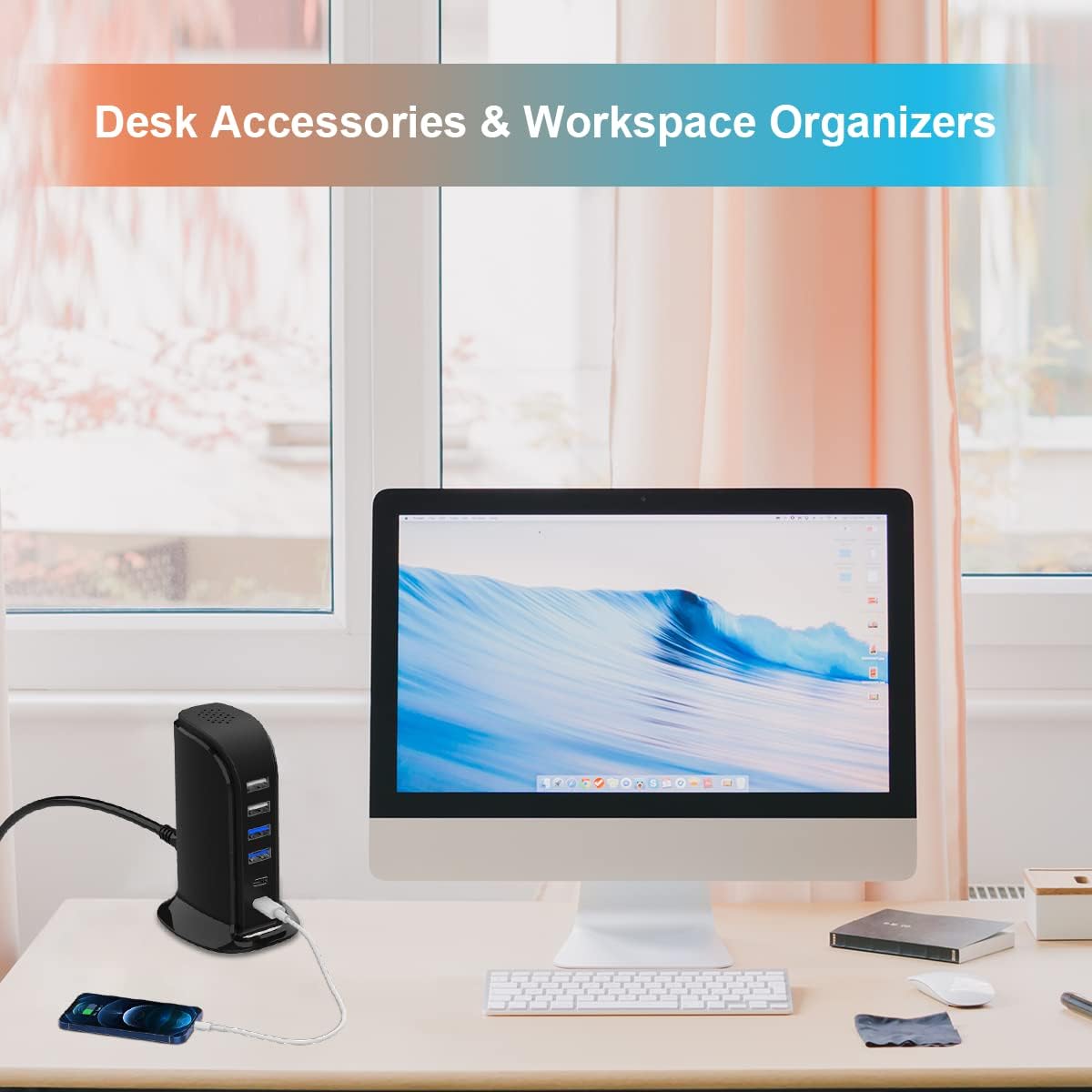 Desktop Cable Management: 6-port charging station with 5ft power cord; Compact, lightweight, space-saving, portable, versatile, USB charging hub for 6 devices simultaneously.
