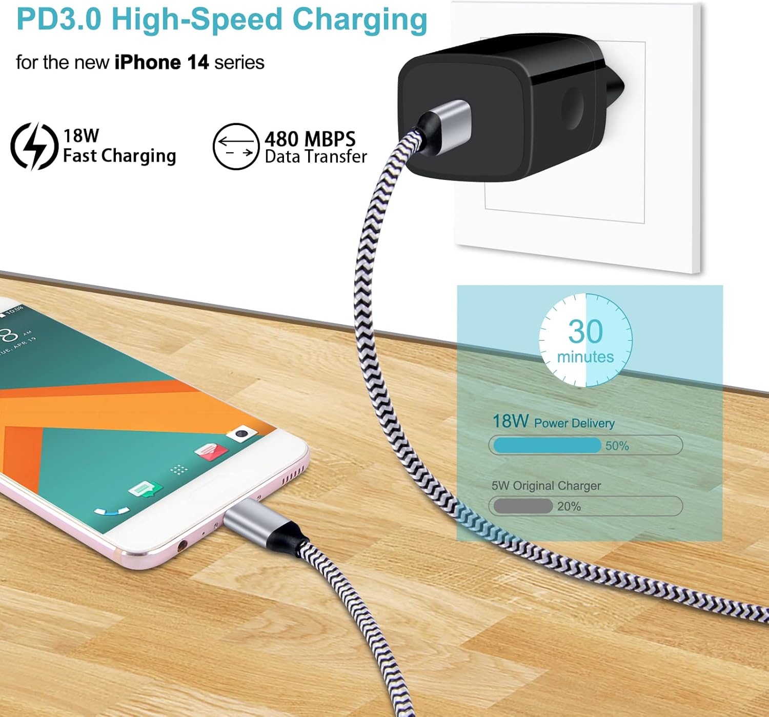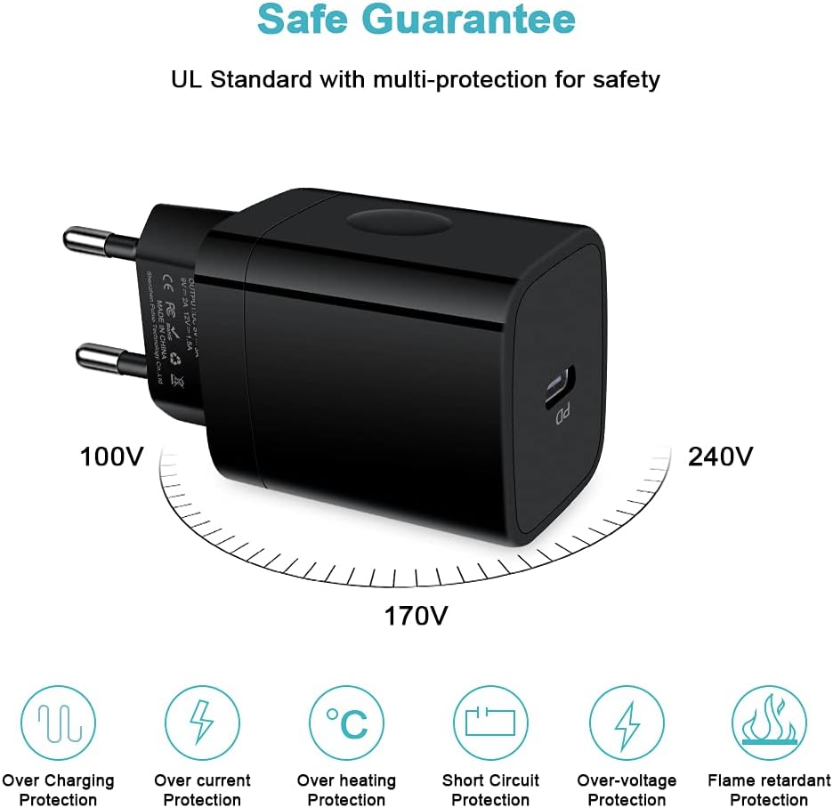 【Fast Charging】The PD 3.0 fast USB C adapter offers fast and efficient charging up to 4 times faster than a 5W charger adapter, quickly charging your iPhone 16 Pro Max / 16 Pro / 16 / 16 Plus / 15 Pro Max / 15 Pro / 15 / 15 Plus from 0% to 75% in just 30 minutes with the original cable (Not included). The USB C power adapter has multiple protection systems against overheating, overcurrent, overcharging and short circuit.
