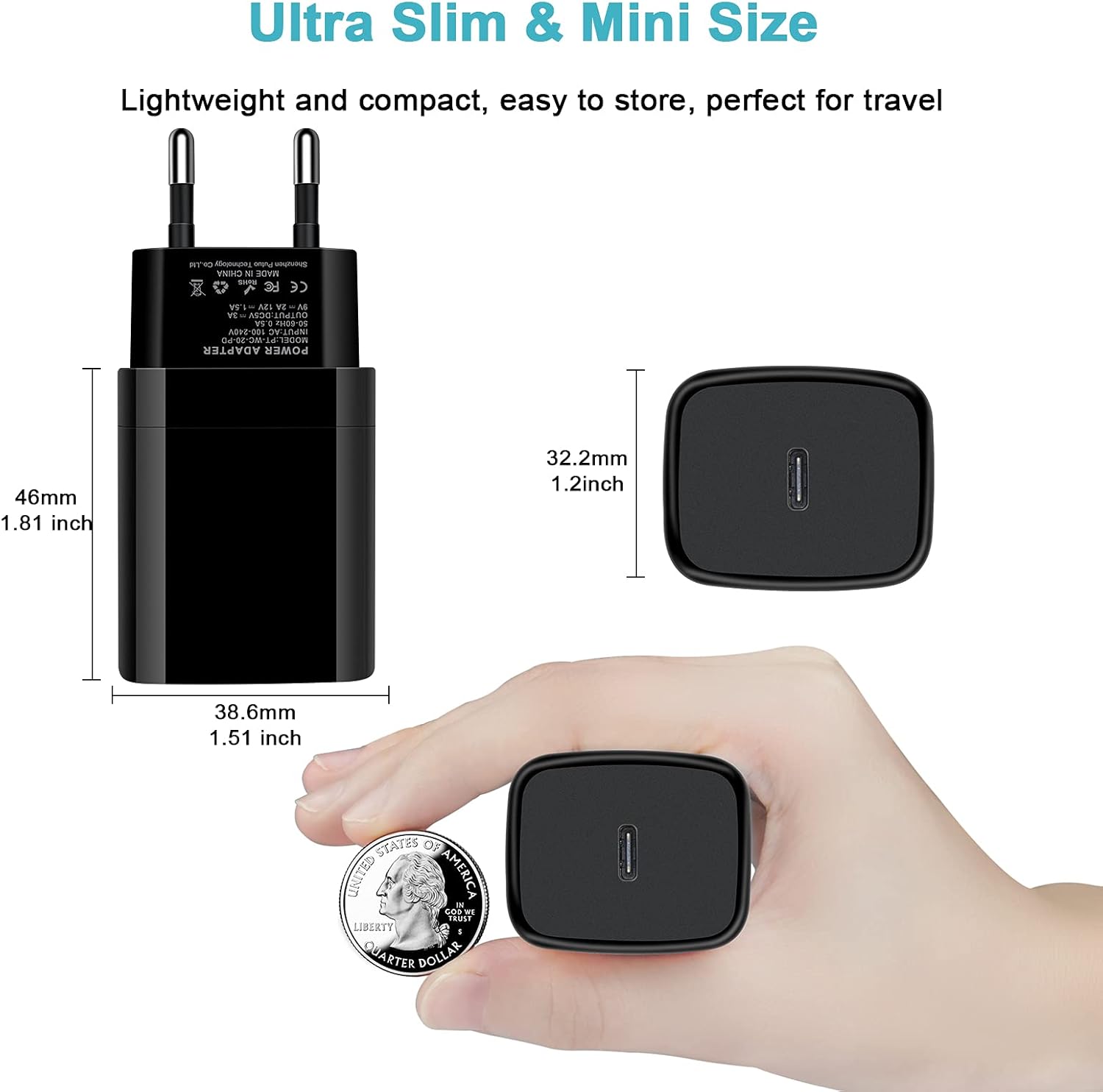 【Compact and Portable】These Type C travel adapter plugs are compact and lightweight, do not take up extra space or block the other ports on the wall outlet, ideal for airport trips and hotel rooms.