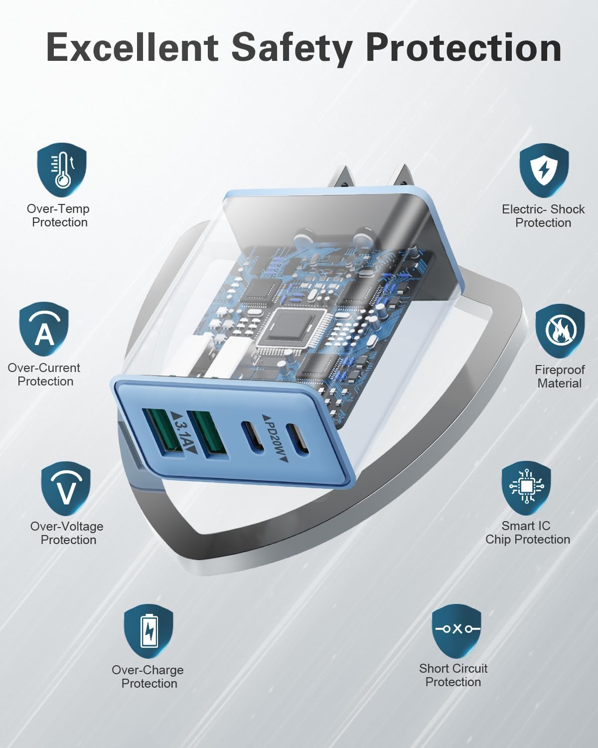 ⚡ Upper Security: Equipped with a wide range of safety features that include temperature control and current regulation to protect their connected devices. The USB C charger block has approved CE, FCC and UL certifications, load its devices with greater security.