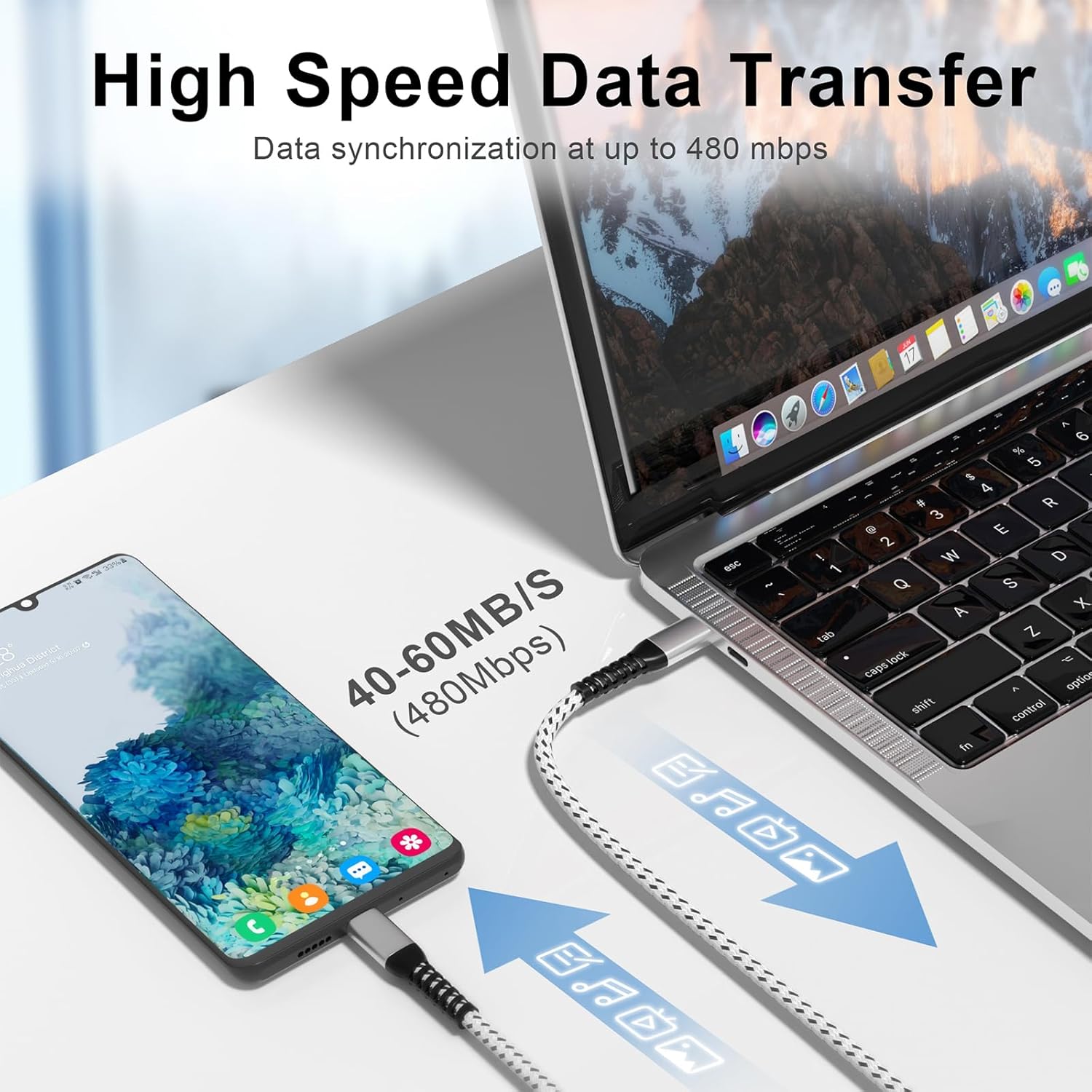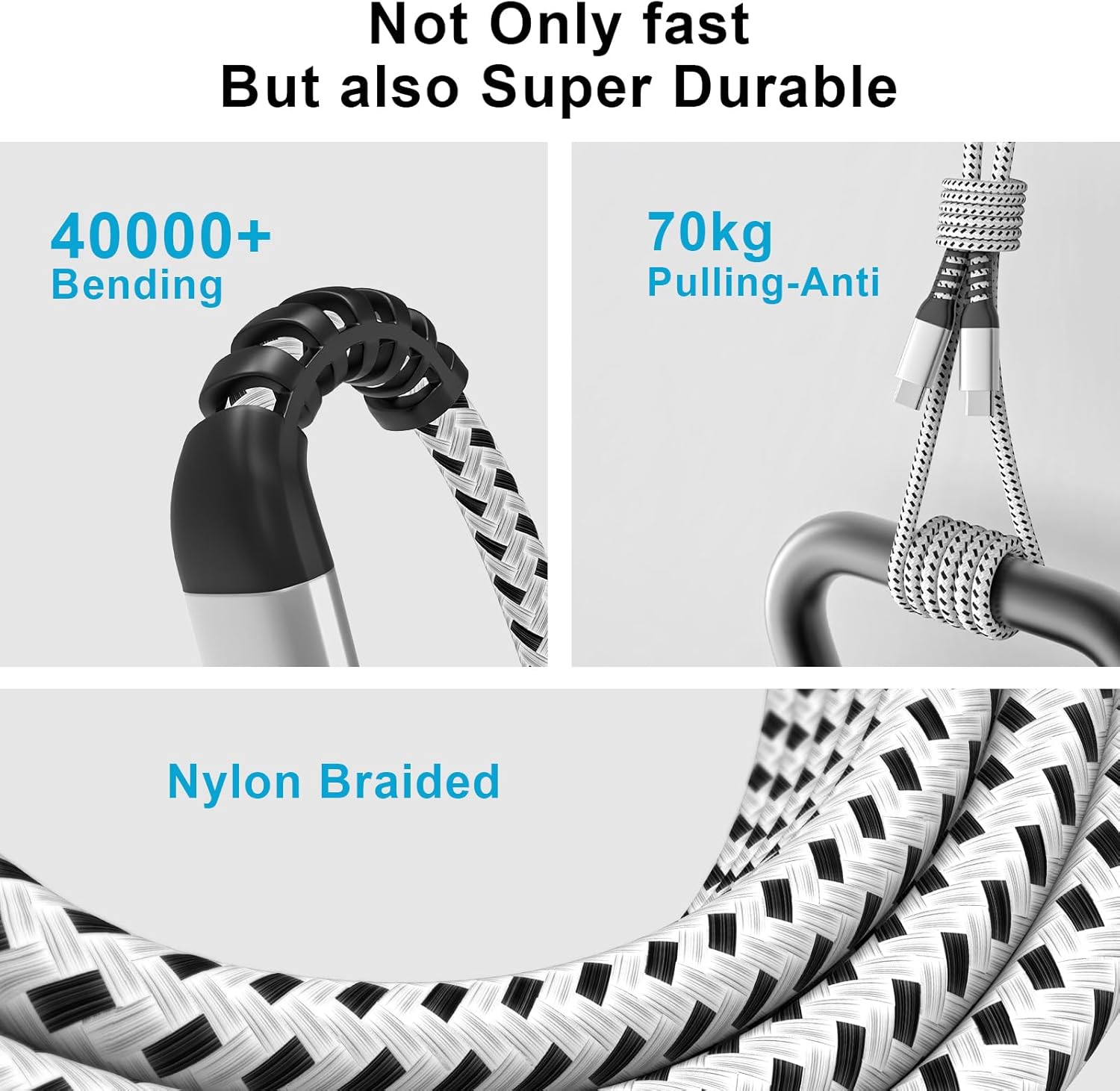 This cable is designed to withstand daily use and heavy wear and tear, and is made from durable military-grade fiber for long-lasting use. The most flexible, strong and durable woven material, increasing tensile strength by 200%. Say goodbye to frayed and damaged cables and enjoy reliable, long-lasting connections for all your USB C devices.