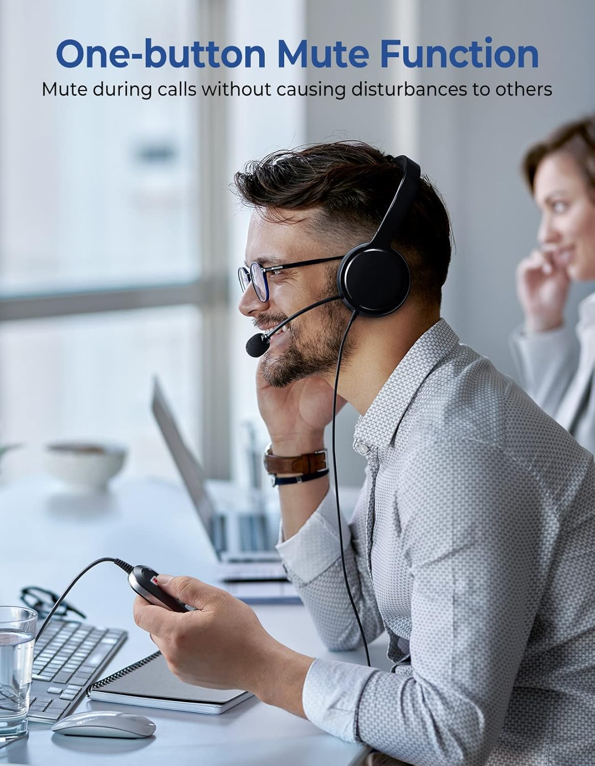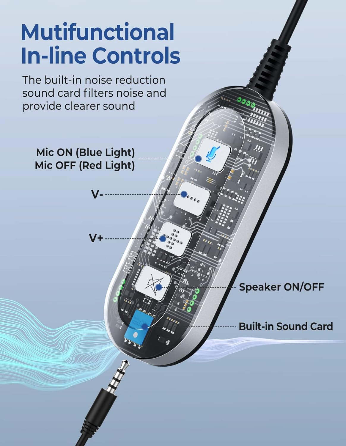 Multifunctional in-line control: You can easily turn the speaker on/off, adjust the volume and mute it during calls without causing disturbance to others; Being able to turn off the microphone with a control button on the cable is a great advantage, there is no need to check the device to adjust it; When muted, the control button will immediately illuminate red; This efficient PC headset control method improves work productivity