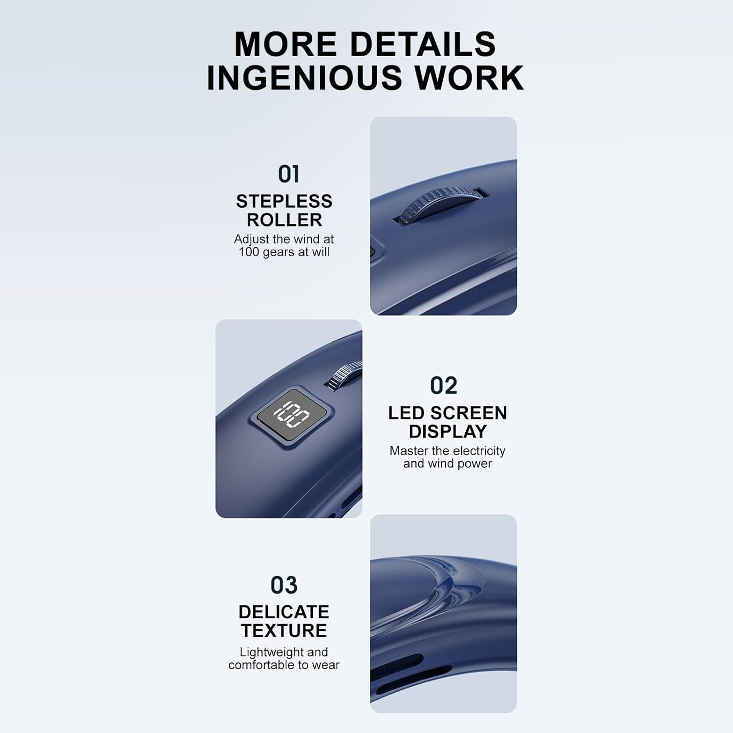 【Fashion and Unique】Fashion design shape changes the unique design of traditional portable neck conditioner. Perfectly integrates the stylistic design of the aircraft engine. From its appearance, this hanging portable FAN is a good decoration. From the perspective of cool effect, the hanging FAN has strong wind power and outstanding cool effect. The portable hanging fan is suitable for traveling in hot weather and is a good helper to prevent sweating in summer.