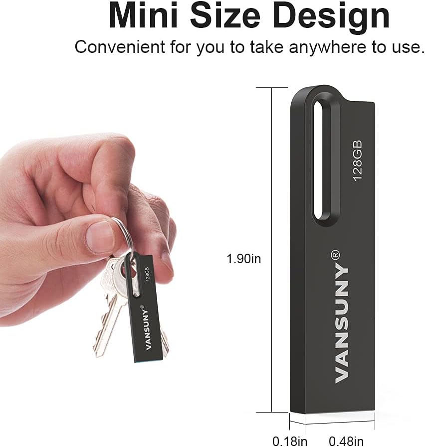 Portable and Convenient Design — The USB drive is so small (Size: 1.90 x 0.48 x 0.1 inch) and handy that you can put it in your pocket or bag. There is also a keychain on the USB drive, which helps you clip it to your backpack or wallet, carrying the data wherever you go.