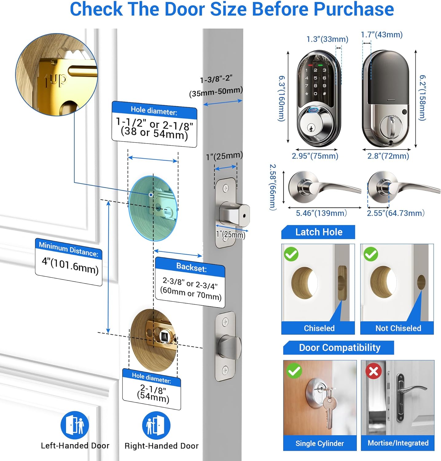 Home Integration: After connecting Veise G2 Gateway (sold separately), you can access and manage users remotely, and view timely history. Installation can be completed in minutes and requires no wiring; Guaranteed to fit standard doors.