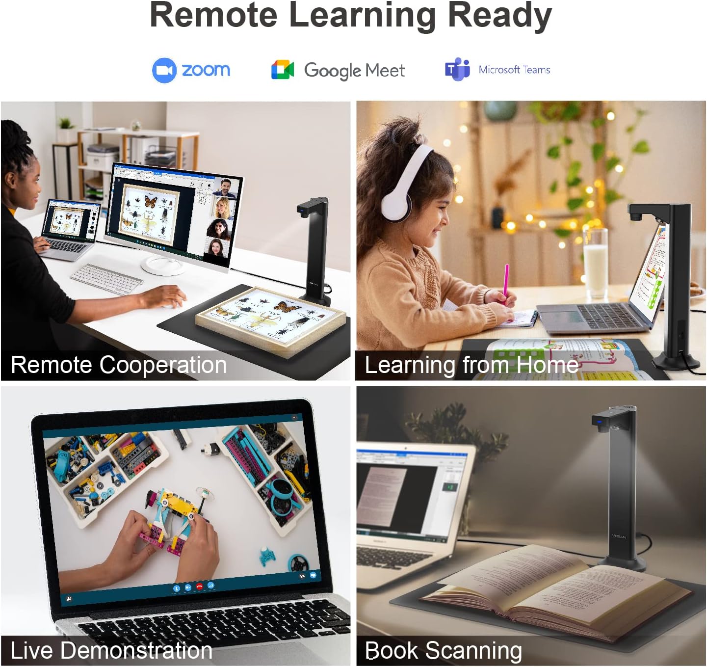 【Remote Learning Ready】Compatible with UVC/UAC, DL8 allows you to demonstrate physical objects to show live teacher or presenter activities to remote students via third-party video conferencing software such as Zoom, Google Meet and Microsoft Teams . We also offer 30-day FREE return, 1-year warranty and responsible service from technical support team.