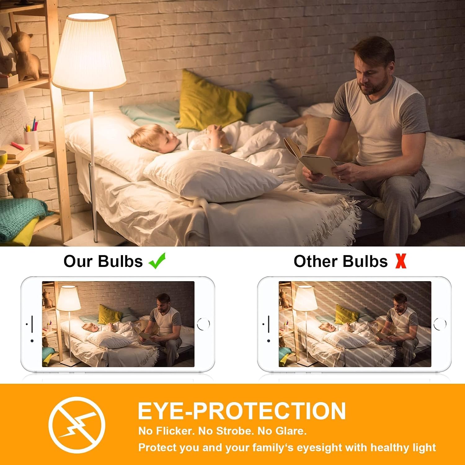 Eye-Caring 60W Equivalent Light: Generating 800 lumens of light, our dimmable LED bulbs can perfectly replace 60W incandescent bulbs with only 7 watts used. Save around 90% on electricity bills without affecting the luminance level. In addition, they emit stable light without flickering, hum or strong reflections, effectively protecting your eyes and those of your family.