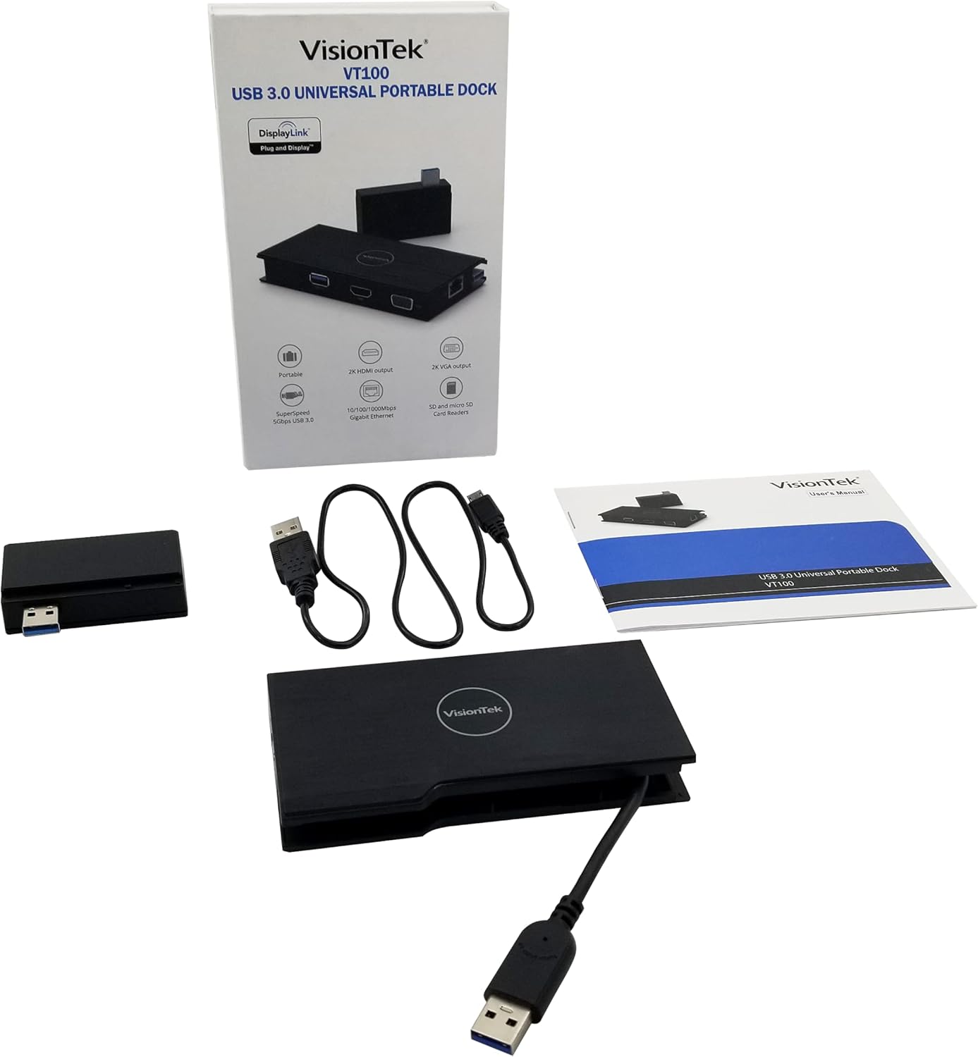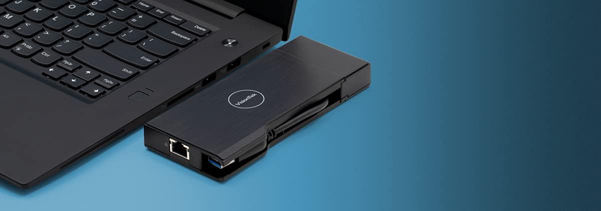The VisionTek VT100 portable docking station allows you to easily connect your Windows or Mac OS laptop to two displays and the most popular connectivity ports via a single USB connection. This high-quality docking station is a single-cable solution that allows you to take full advantage of up to two monitors and a Full HD card. With a Plug & Play installation (no additional drivers or downloads required), you can easily turn your laptop into a complete workstation by adding peripherals such as a full-size keyboard, mouse, external hard drives, printers, webcams, and projectors. This single-cable docking station is ideal for: extending work displays, connecting projectors or TVs, connecting additional displays to clone for education.