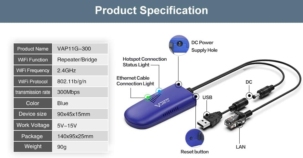 💎【Supports three types of application methods】WiFi Repeater (Wireless Signal Repeater): can extend the coverage distance of WiFi signal, WiFi transfer and WiFi access point (AP), WiFi Bridge: can intelligently control the Device WiFi mode (IP layer or MAC layer Transparent Transmission), WiFi AP access points.