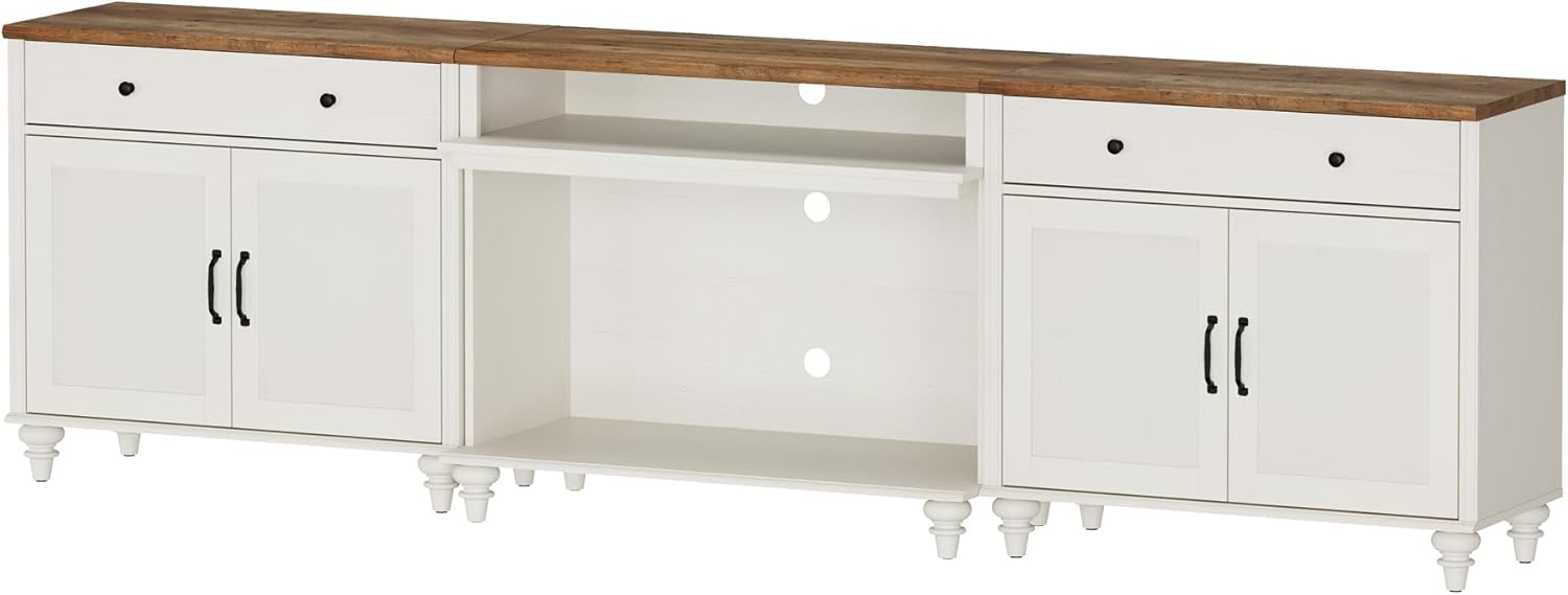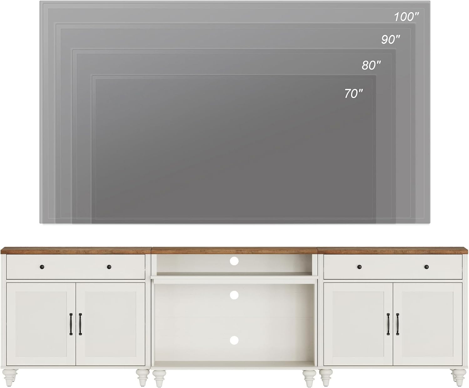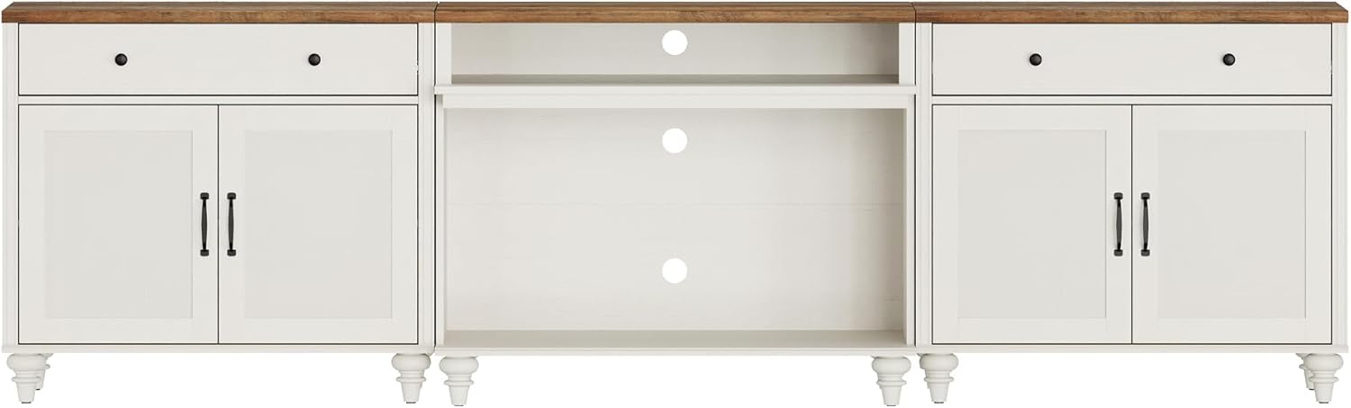 【Great storage television support】 This modern media console comes with 2 sliding drawers, 2 large open shelves and 2 large double door storage cabinets, providing abundant storage or exhibition space for CD, DVD, games box, decorations, etc. with spacious table supports with 75.85.90,95,100 inches long TV.