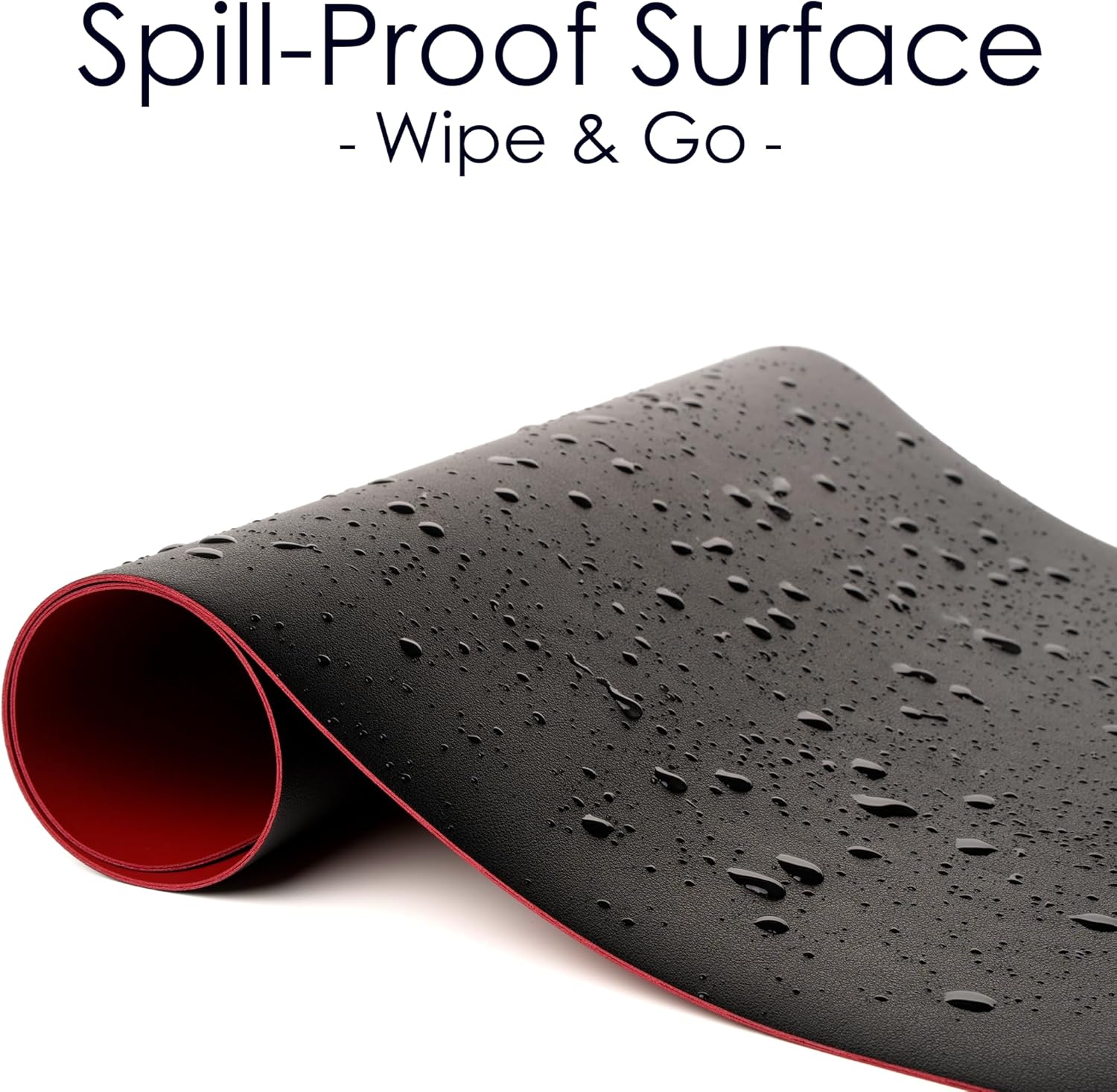 [ WATERPROOF MATTE FINISH ] The desktop carpet has an excellent waterproof matte finish surface to keep spills outside your desk. And it is easy to clean. It also has a non -glow surface to reduce visual fatigue, which is excellent for the long days of the desk. And don't slide when using it.