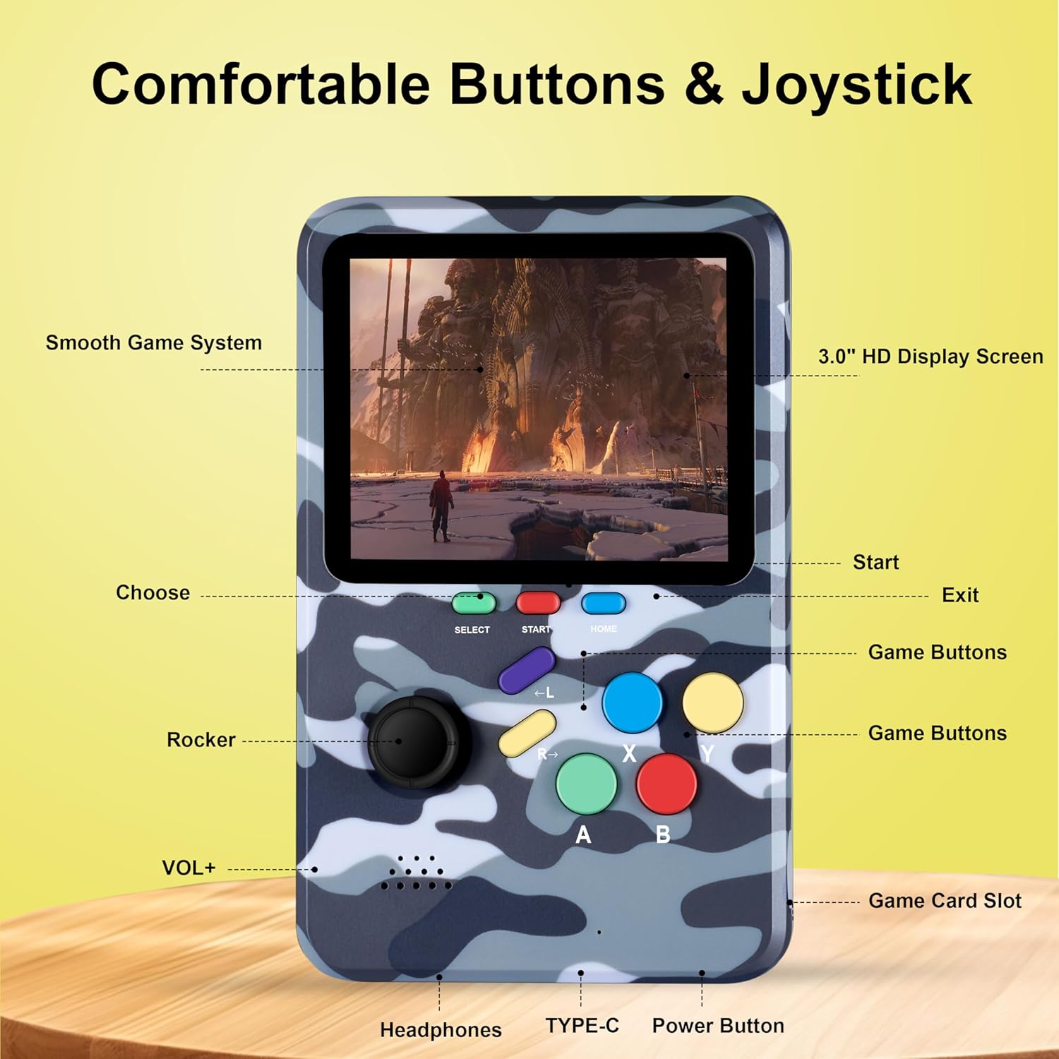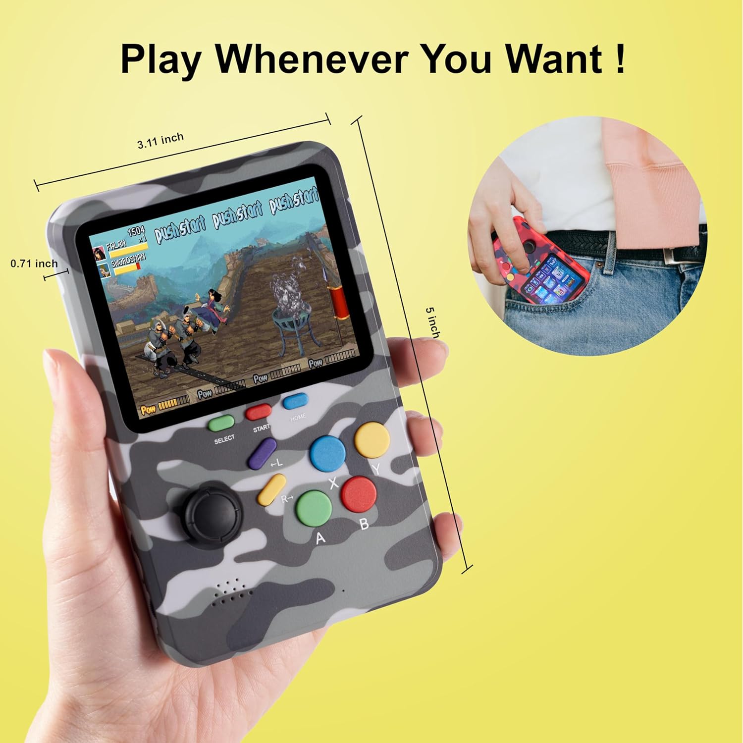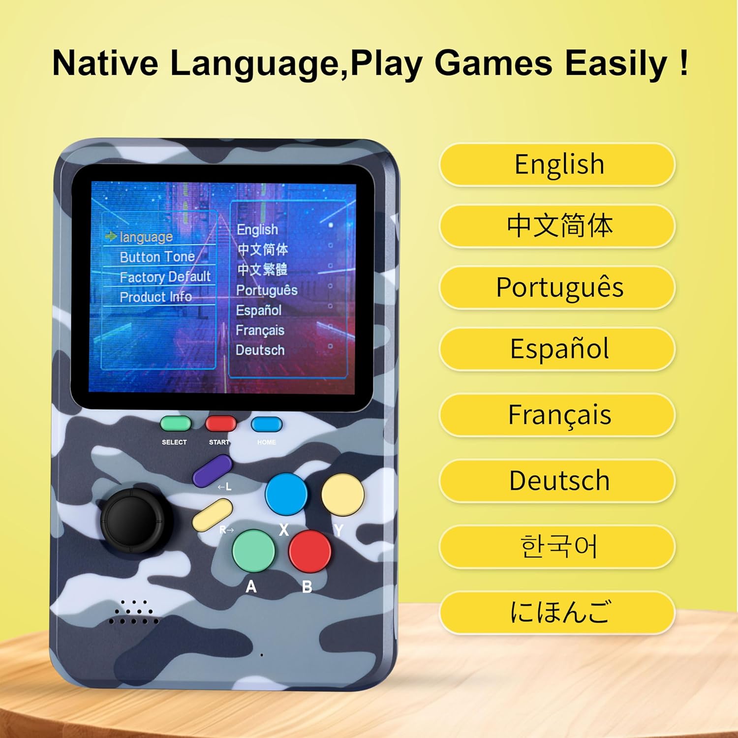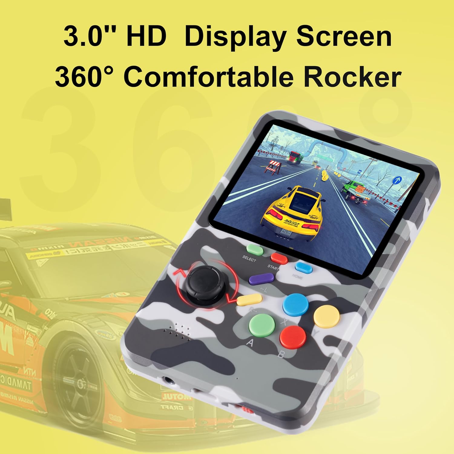 Great Gaming Experience: Our game consoles with built-in games have 360° ergonomic rocker and comfortable game button, 3.0 inch HD screen and stereo speaker. Upgraded game system with native language. You can pause or save games, so you can continue your game without starting over. All for a better Gameboy gaming experience!