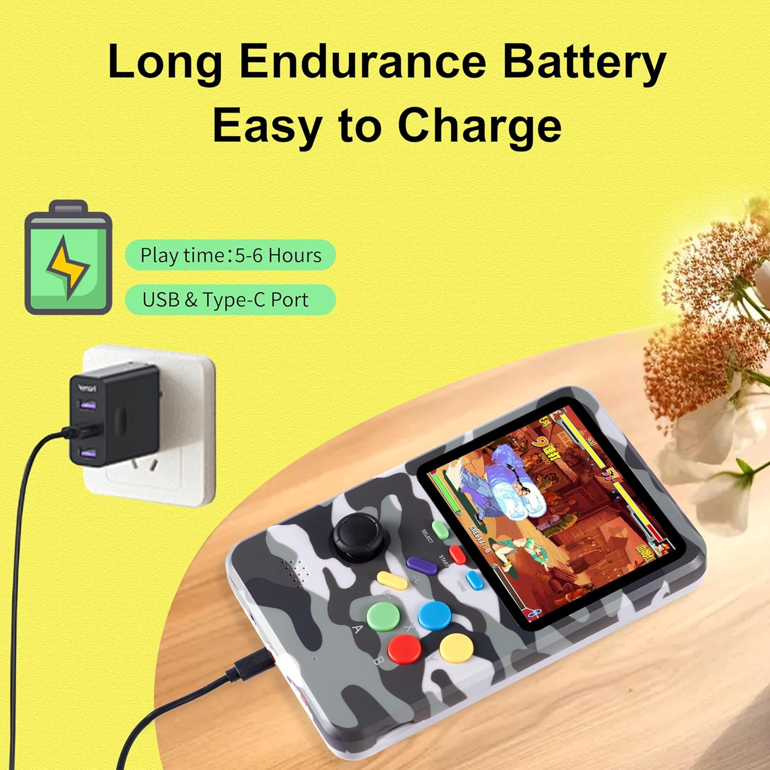 Compact and Portable: Our emulator console is palm-sized, built-in 1500mAh rechargeable Li-ion battery ensures 5-6 hours of playing time while on the go or traveling. Enjoy retro emulator console games whenever you want!