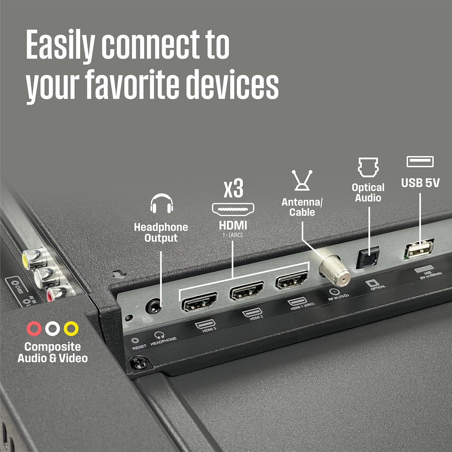 Connectivity is king: equipped with 3 HDMI inputs, 1 composite video and 1 optical digital audio input for maximum flexibility. A full range of inputs to connect your cable box, game console, streaming device, sound bar, DVD/Blu-ray player or a digital antenna for local channels.