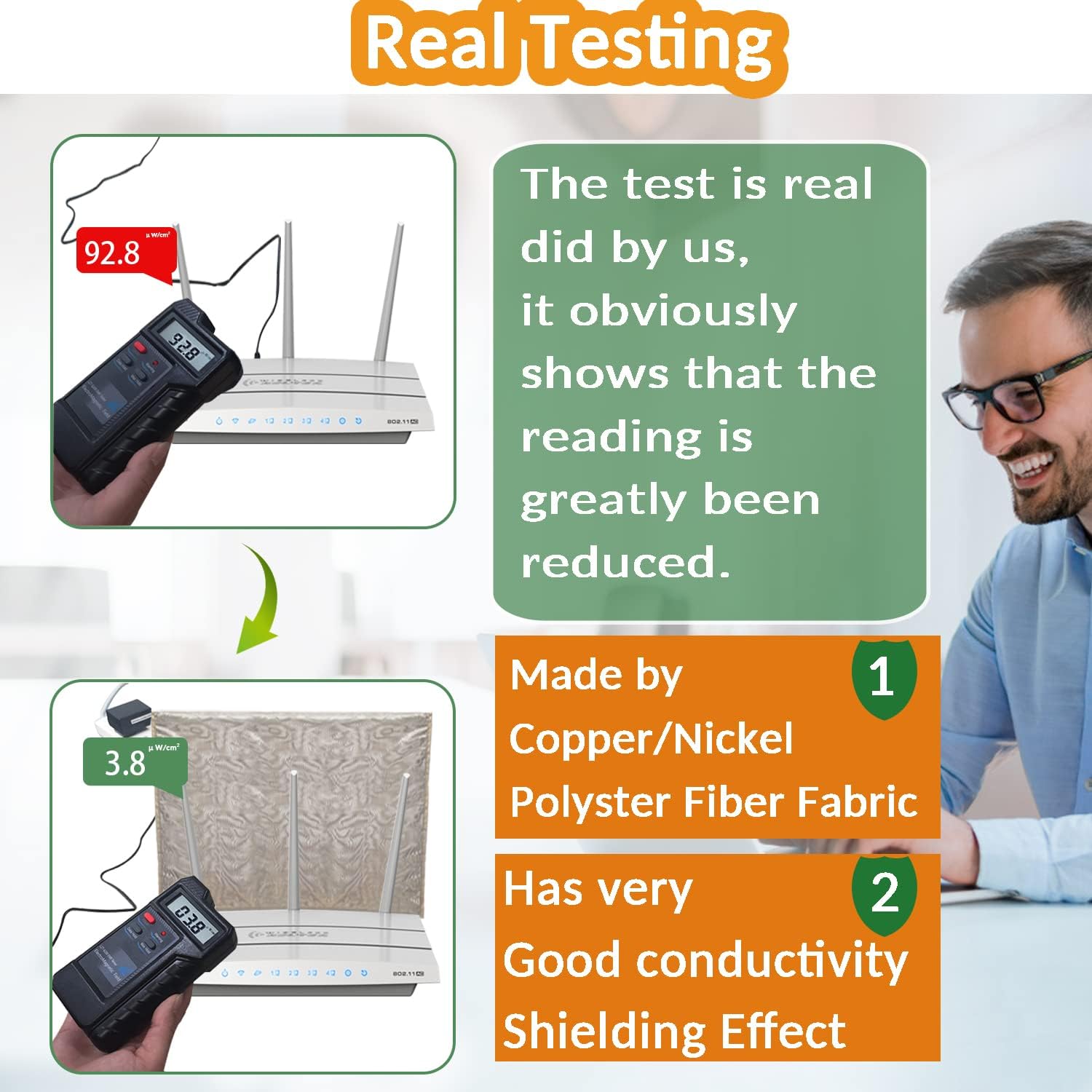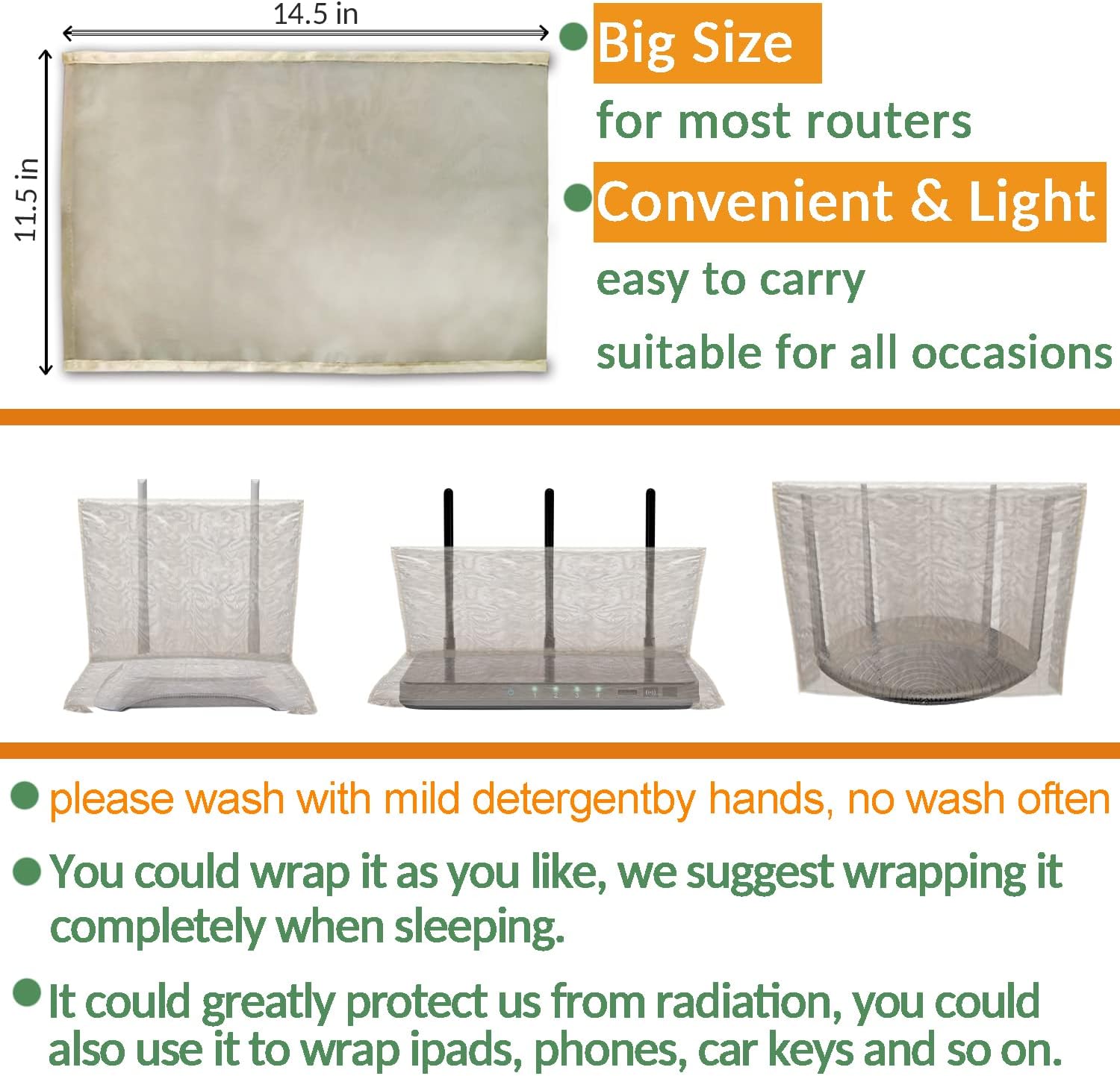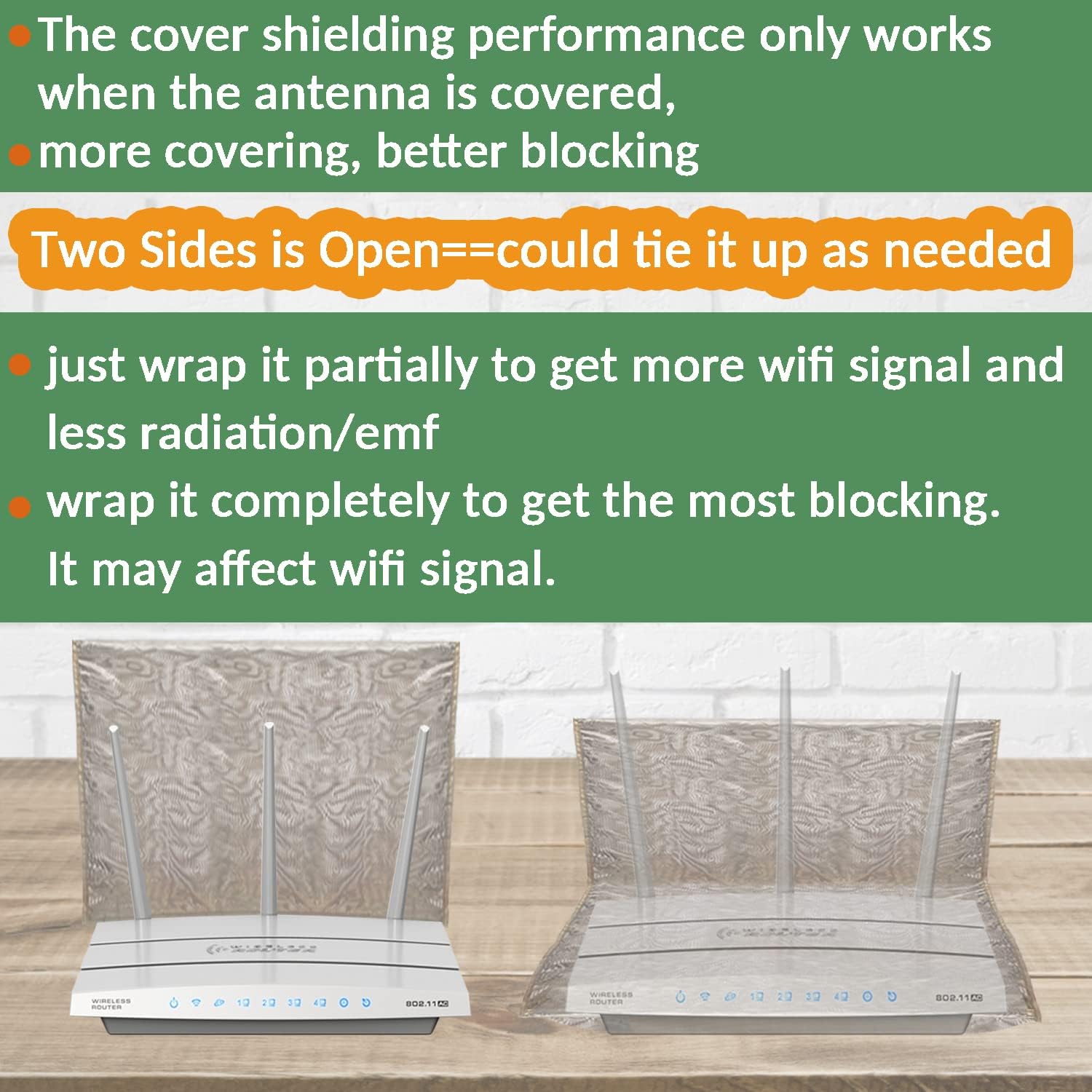 Deater protection: The Wi -Fi cover could reduce the harmful emitted rigger, the router cover is made by a top copper/ nickel/ polyester fiber fabric that is certified to provide a protection of 99,999%. The wifi cover is designed by two open sides, you can choose a different level block resistance opening the side or closing the side. The closer, the lock performance will be better. You could bind both sides to let it close