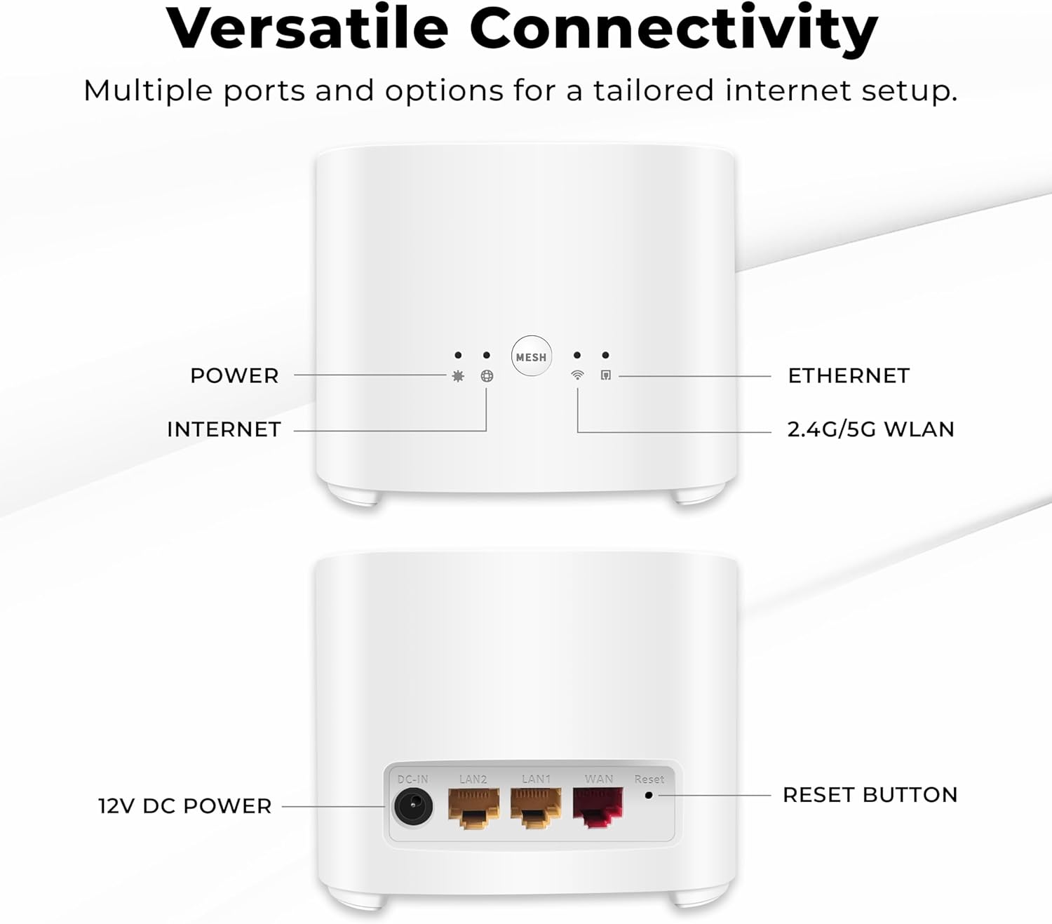 Transform your Internet experience with the Ax3000 D Wifi 6 mesh router, designed for superior speed and connectivity. Reach ray speeds up to 3000 Mbps with advanced Wi -Fi 6 -band technology, ideal for perfect transmission, high definition videos and uninterrupted web conferences. The router includes a high-speed WAN RJ45 RJ45 port 10/100/1000/2500Base-T RJ45 and two LAN RJ45 10/100/100/1000Base-T RJ45 ports for direct connections to its games of games, smart and desktop televisions. Expandent and assures your network with mesh network capabilities and intelligent guests. Update the Ax3000 D for performance and next level coverage!