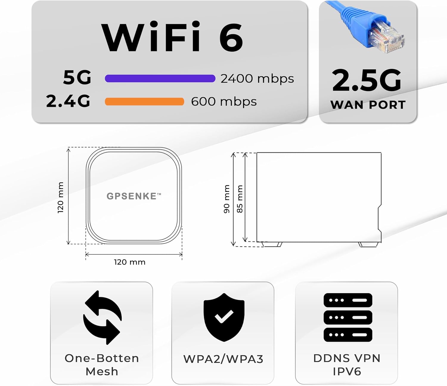 Wi-Fi Routers for the Household, it is a SOHO class safety solution for family homes. Experience the emotion of your favorite games without interruption with our Wi-Fi6 wifi6 mesh router 3000Mbps GP-Ax3000-D 3000-D 3000Mbps, designed with double band technology to meet the growing demand for transmission without problems. The Wi -Fi 6 of scalable mesh router Gpsenke gives you 1600 square feet. It allows up to 100 devices to be connected within the Wi-Fi coverage area, and its application allows easy configuration and administration of Wi-Fi.