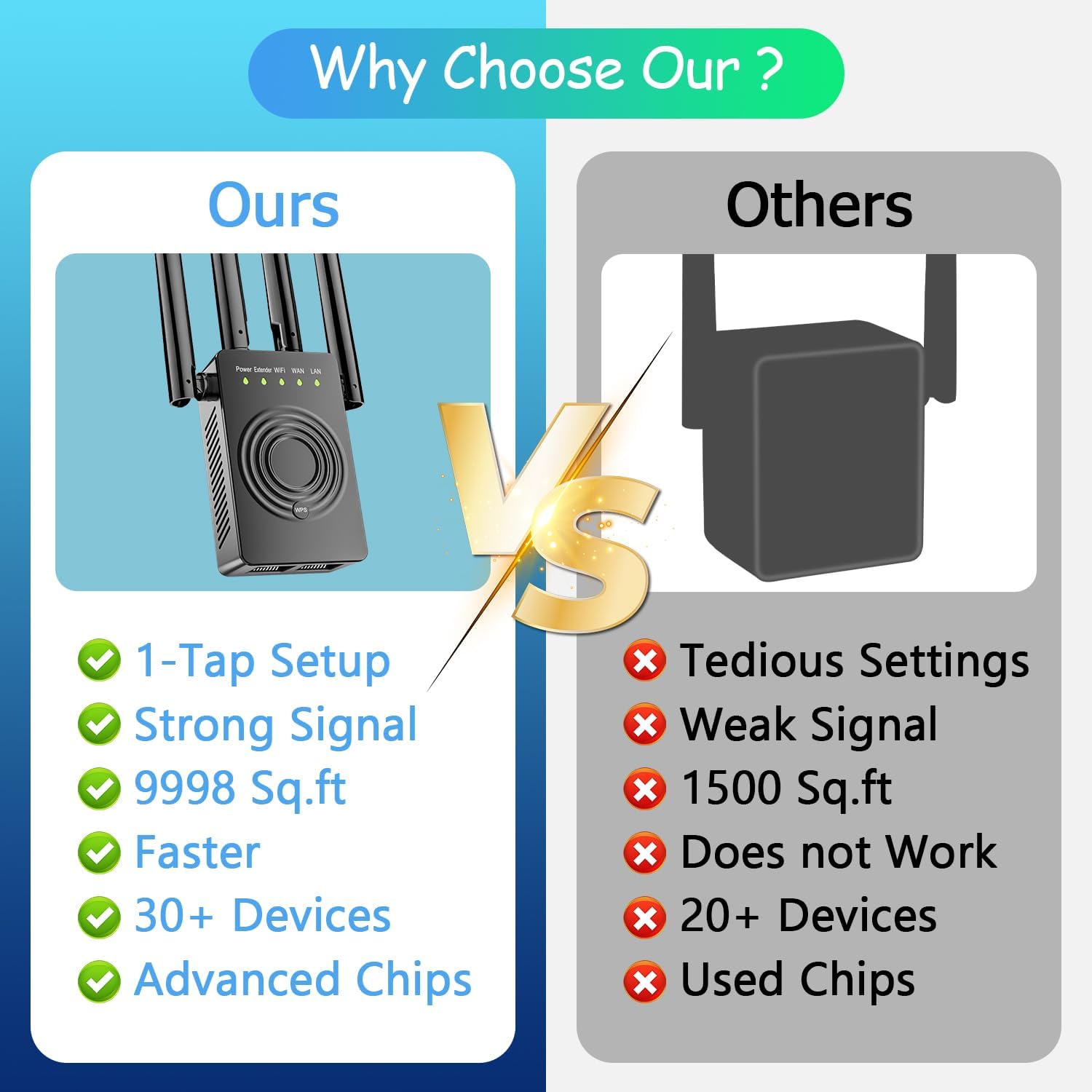 Up to 9,998 square feet – Never be trapped behind thick walls, appliances, and cement floors. It offers ultra-stable bandwidth for online gaming, video conferencing, and even 4K HD video streaming. Places in rooms, basements, garages and dormitories with weak WiFi coverage with our WiFi range extender.