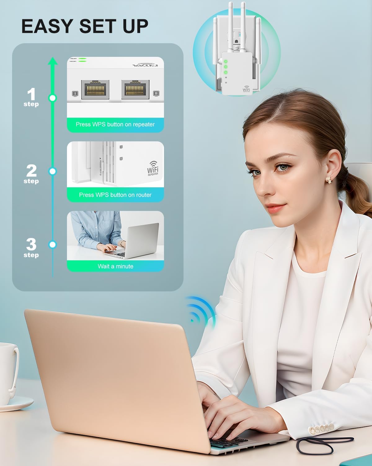 Ultimate in Security: This Wifi extender can maximize network security, ensure your network security issue, prevent others from stealing your network, protect your important data and avoid Wi-Fi interference and privacy issues, enabled you will never worry about internet attacks or privacy information. Leaks when using the Internet. Use this WiFi extender with Ethernet port to avoid WiFi interference and privacy issues, and make your work and life safer and more convenient.