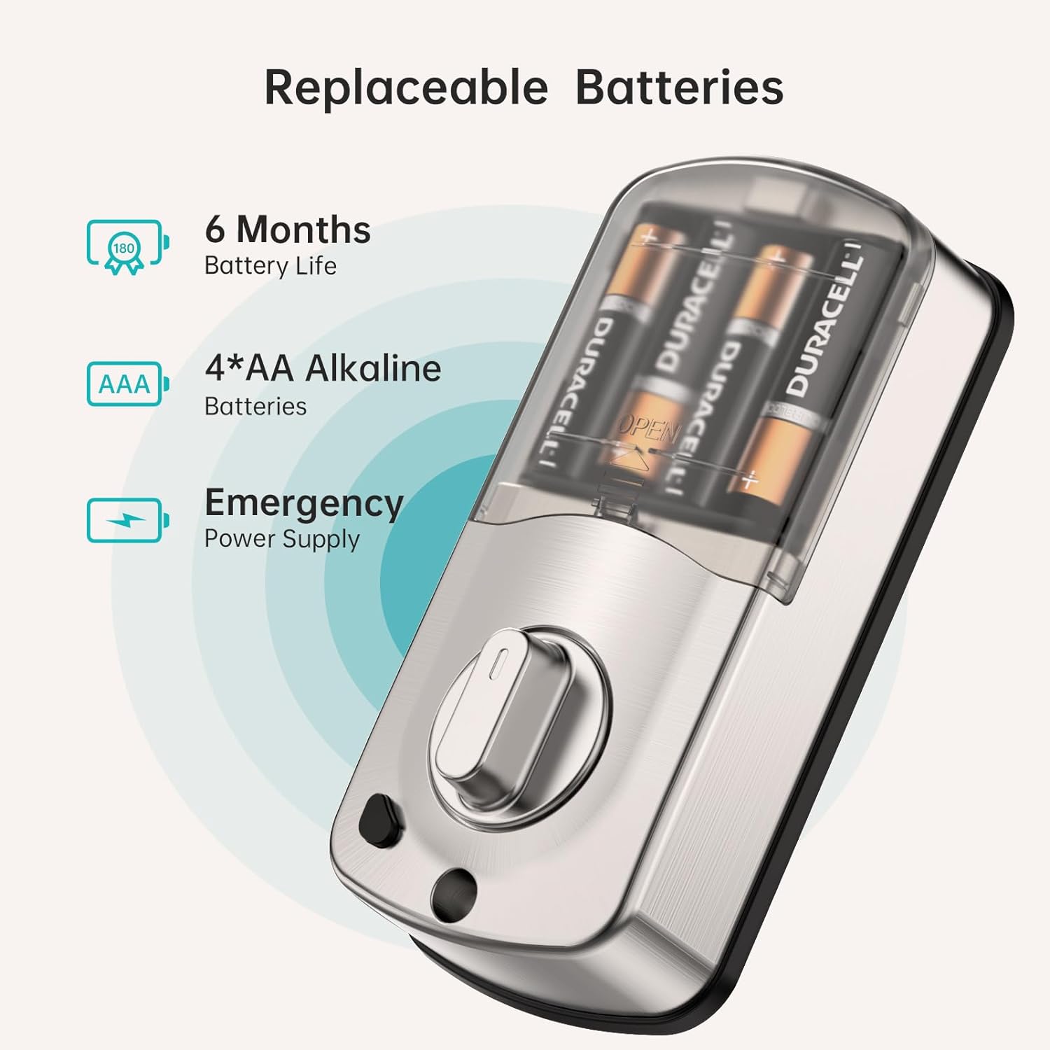 Long Battery Life: The WiFi door lock is powered by 4 AA batteries (not included) which can last up to 6 months. The Smart Life app will remind you to replace the batteries when they have a low alarm and you can also check the battery status on the app at any time. Emergency use of the TYPE-C backup power supply is also possible. Use TYPE-C in emergencies to connect a backup power supply.