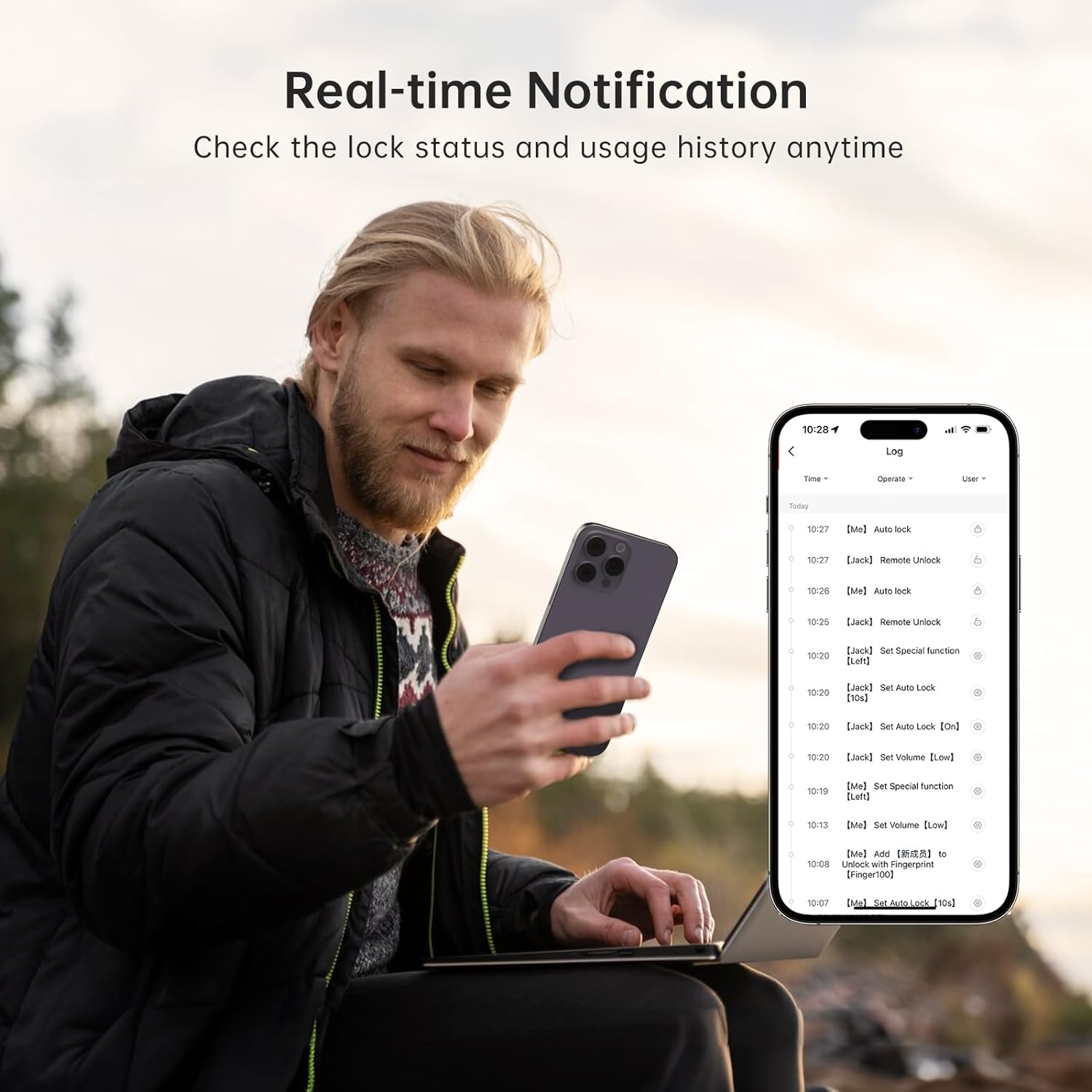 WiFi Remote Access: Our smart WiFi deadbolt, combined with an additional WiFi gateway, allows you to lock and unlock your door remotely. Enjoy the convenience of receiving real-time notifications, remotely sharing or modifying visitor access codes, viewing lock history, and checking door electrical usage records.