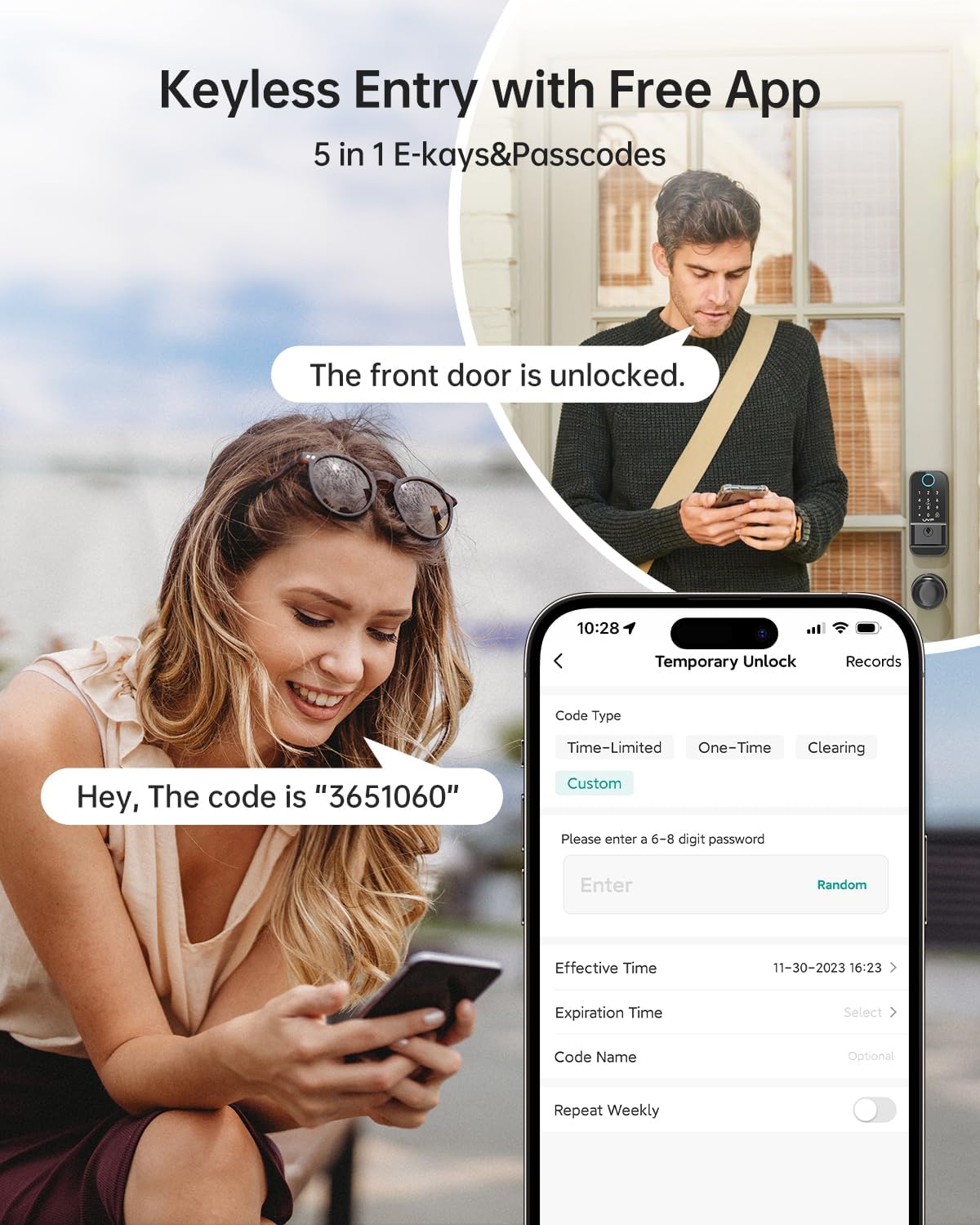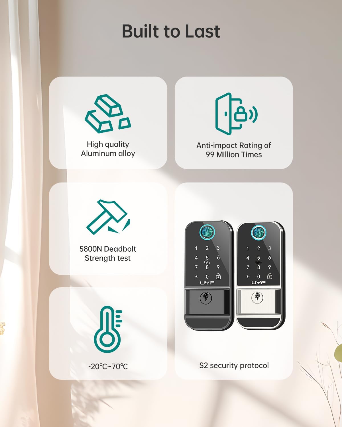 Safety and Durability: Made of high quality aluminum alloy, the outer door lock, inner door lock and 2 knobs ensure durability, preventing deformation and fading. The IP65 waterproof rated keypad deadbolt lock works perfectly between -4 and 158°F. Plus, with just 4 AA batteries (not included), you can enjoy more than 1 year of worry-free use. Invest in a smart lock that combines security, durability and convenience for your home!