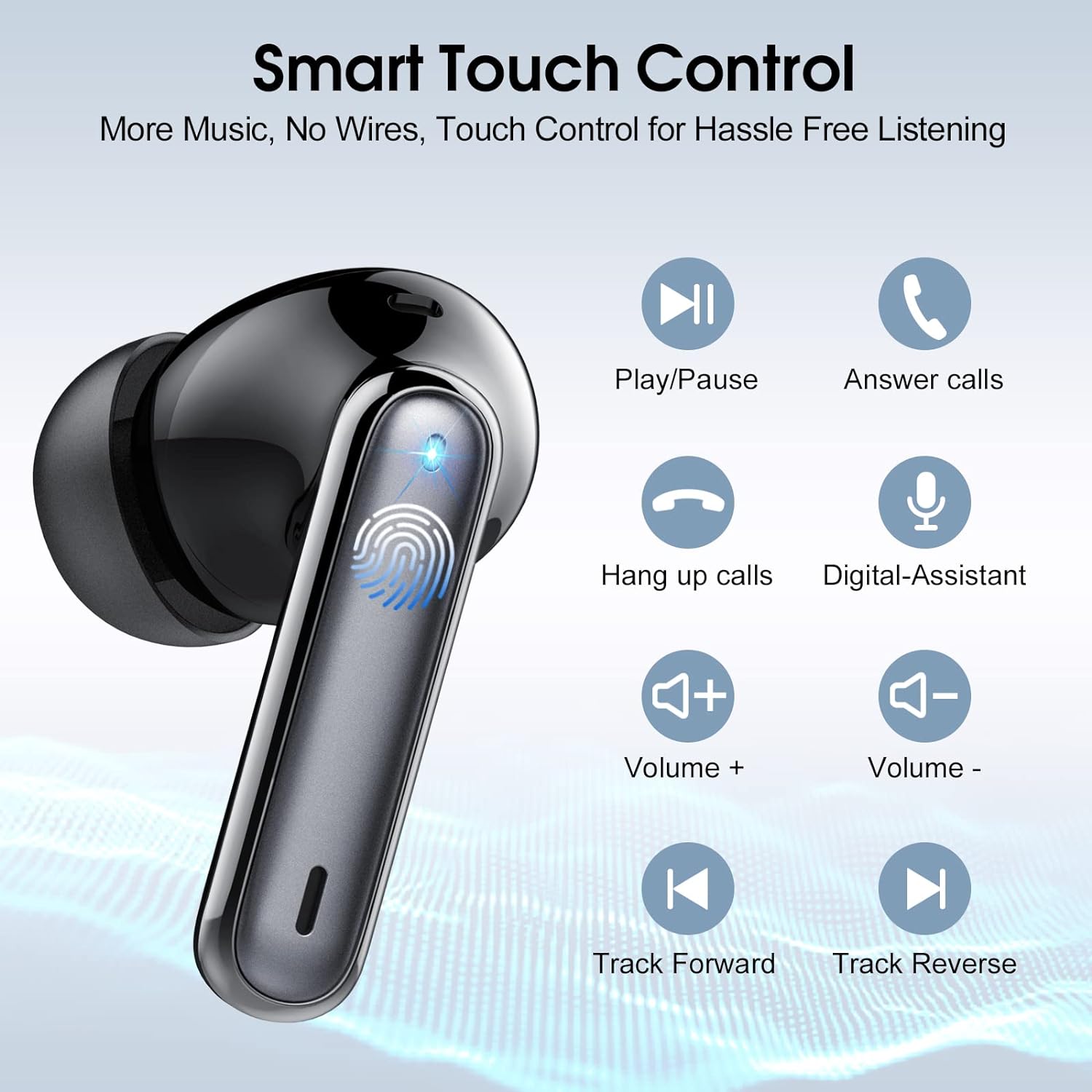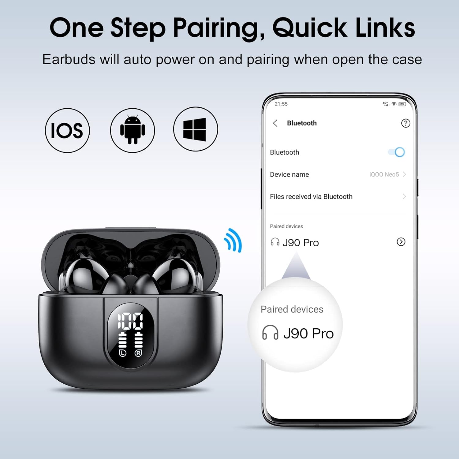 Touch Control & Ergonomic Design: J90 Pro Bluetooth wireless earbuds are equipped with sensitive touch control panels on both the left and right earbud, allowing flexible control of music playback, answering or rejecting calls, adjusting volume, switching music, etc. The wireless earbuds also come with 3 different sizes of ear tips (S/M/L) and a unique earplug design that disperses pressure and ensures a comfortable fit, allowing you to enjoy your own music safely without any discomfort.