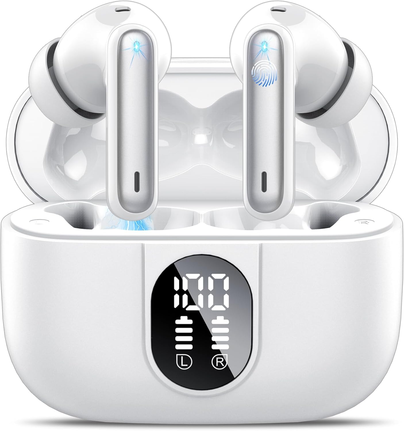 IP7 Waterproof & Wide Compatibility: The wireless earbuds use IP7 nano-coating technology to seal the surface of both earbuds and prevent sweat or rain from entering. The internal nano-coating protects against moisture in the air that could damage components. Allows you to use in-ear headphones in any weather and exercise situation, making them the ideal companion for running, yoga, cycling, etc. In-ear headphones compatible with most Bluetooth-enabled devices.
