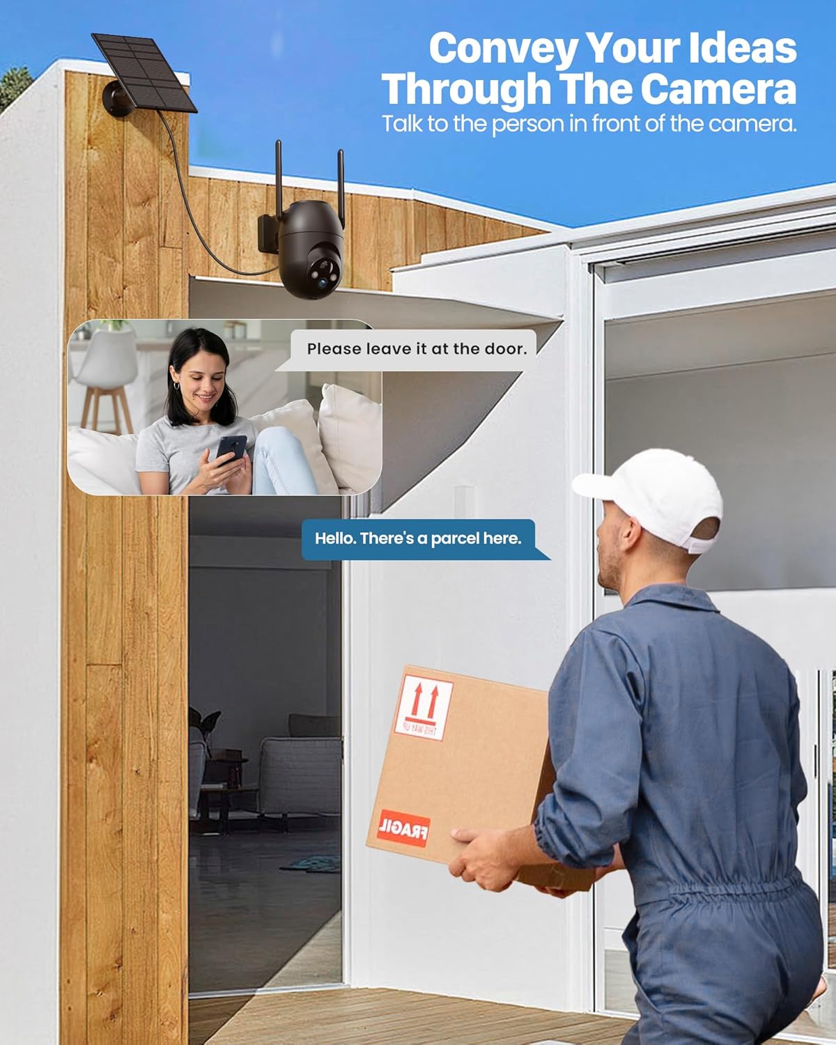 【Camera that emits alarm sound】You can set the wireless outdoor camera to emit a loud alarm sound to scare away unwanted intruders or small animals. The wireless outdoor camera can automatically make a sound when triggering a motion alarm. You can also say whatever you want by manually pressing the microphone icon in the app. While you let the camera automatically sound an alarm, consider whether this will affect your neighbors. Your home security system.