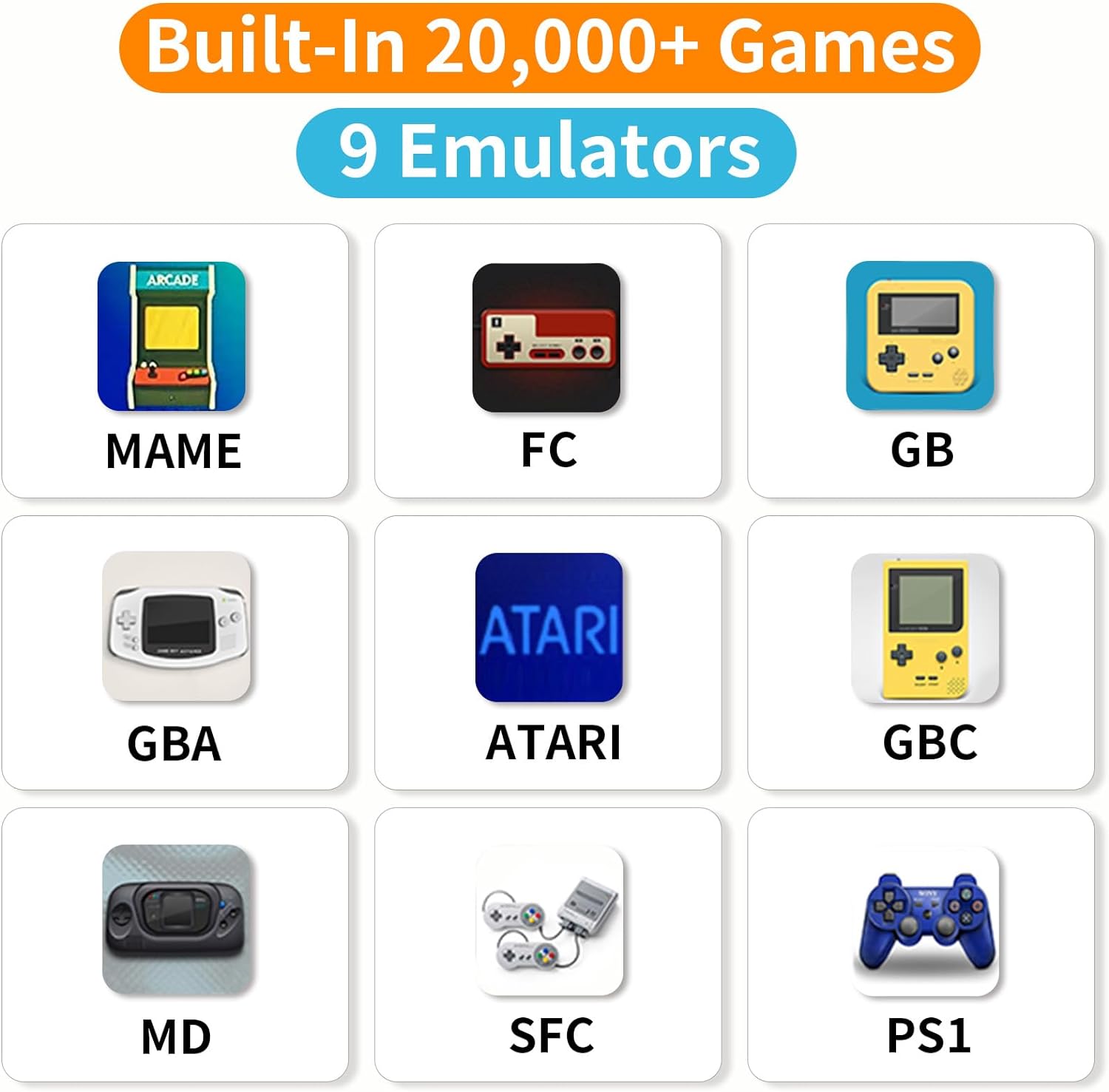 🎮【Built-in 20000+ Retro Games】Our wireless TV game console system built-in and 10 emulators pre-installed with 20000+ retro games and comes with a 64GB TF card in the package which already has the games downloaded. No internet required, plug it in and connect to TV then play. Childhood memories come back the moment you start the games.