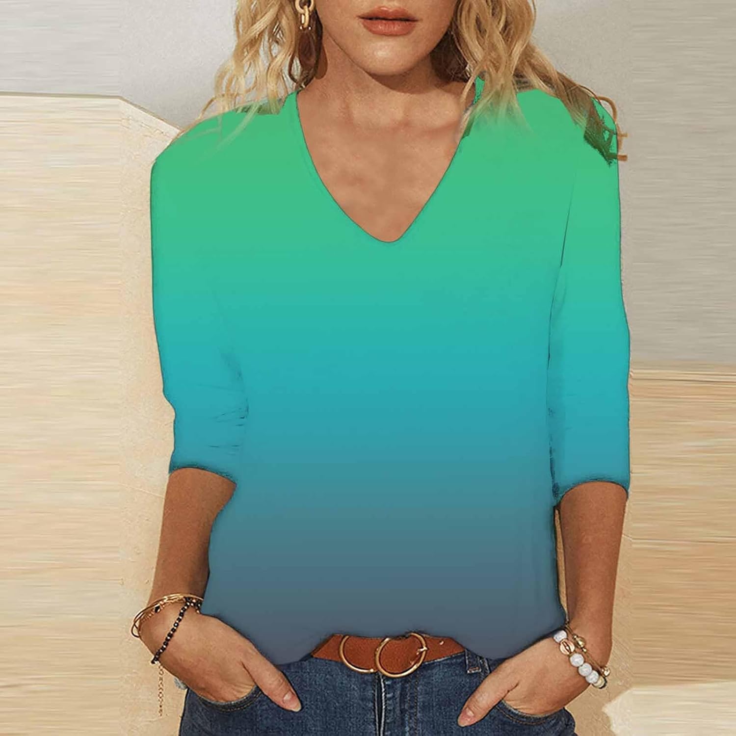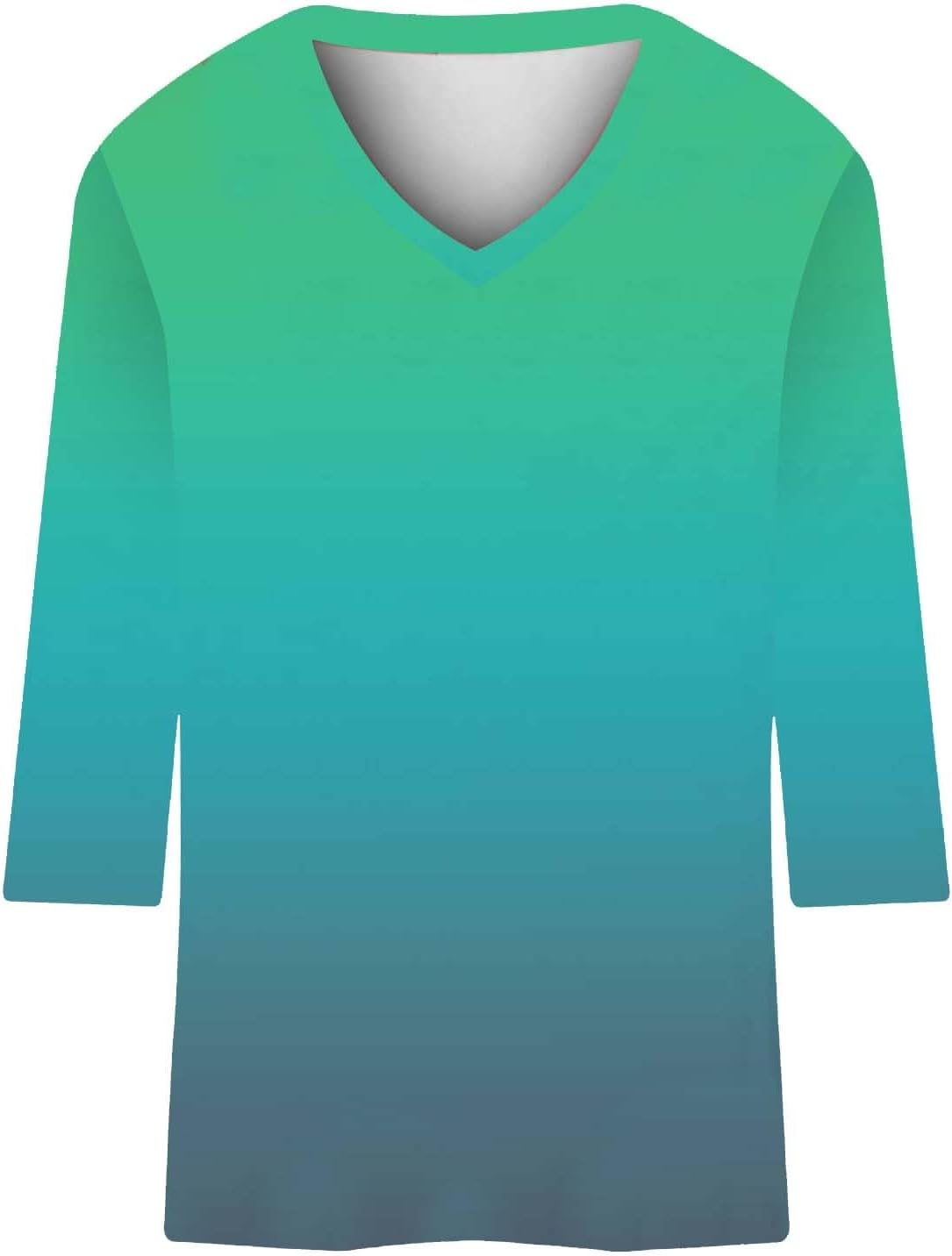 Women's Basic T-Shirts, V Neck, Floral Print, 3/4 Sleeve, Workout…